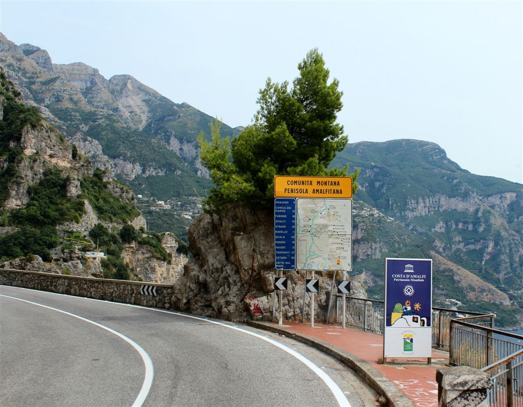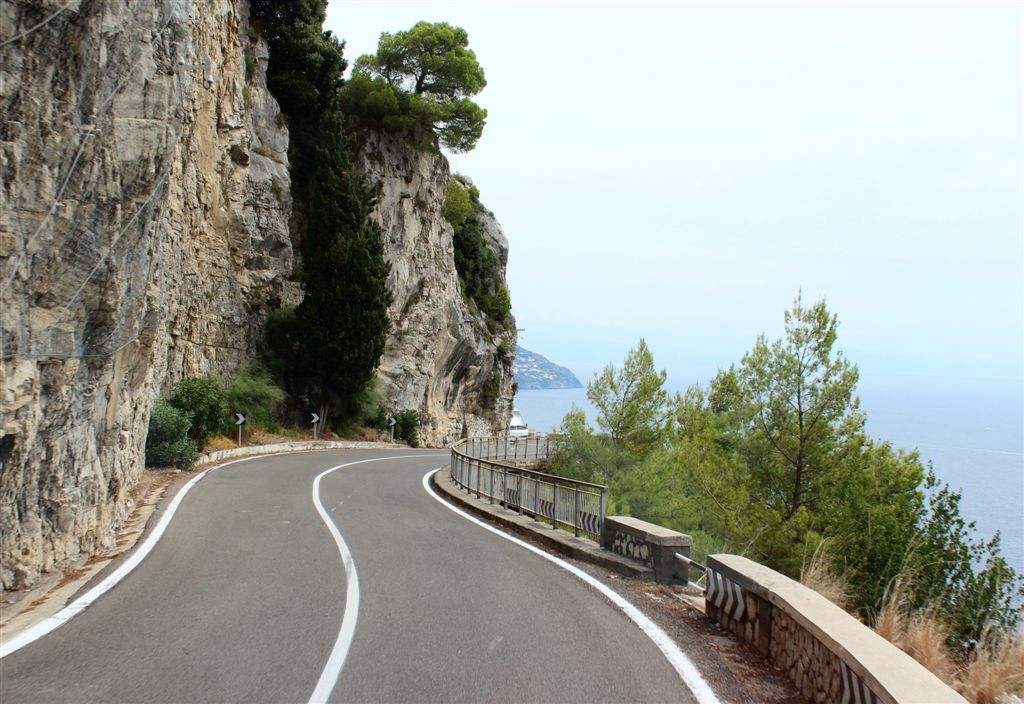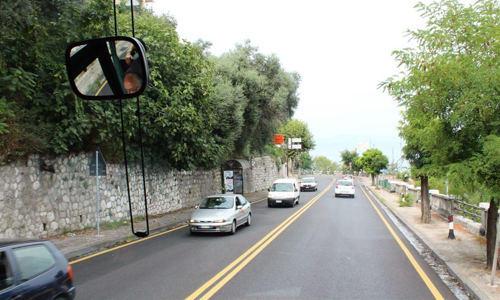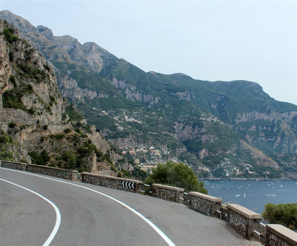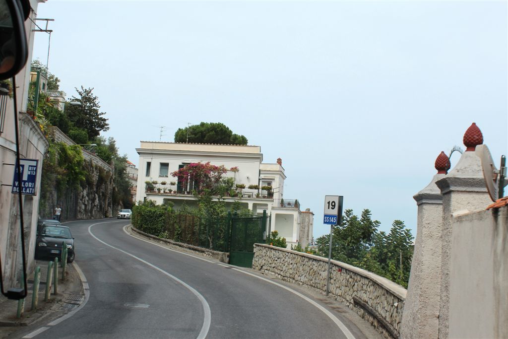 [The Sorrento peninsula and Amalfi coast highways are more conducive to travel by Smart Cars and motorcycles than buses!]