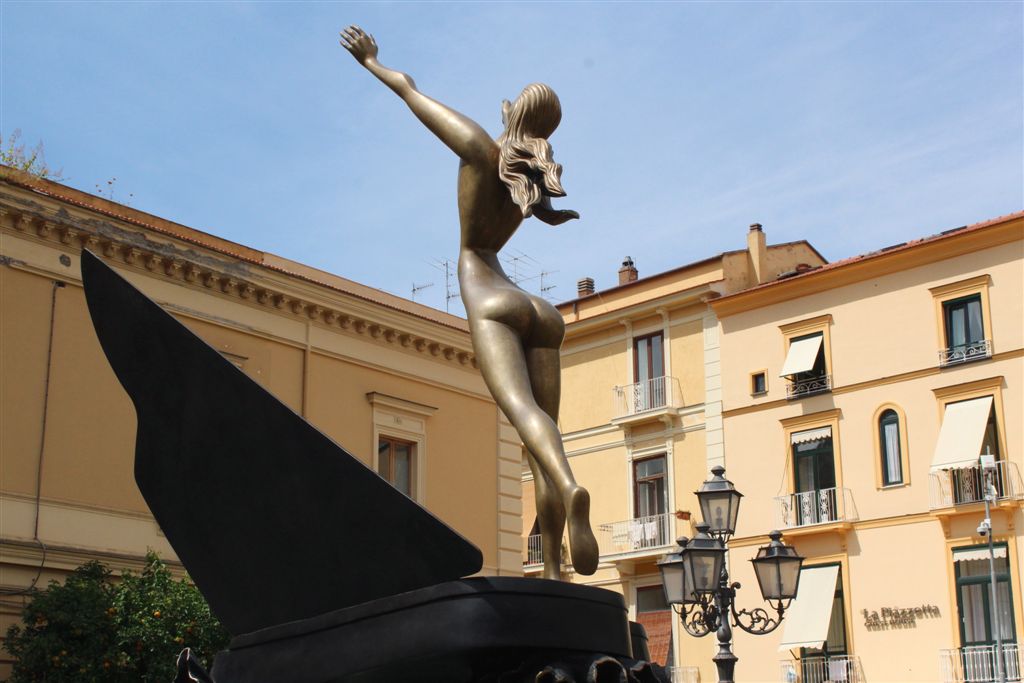[Back at the square with the popular statue. It appears that its stand has “legs.”]