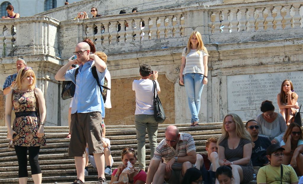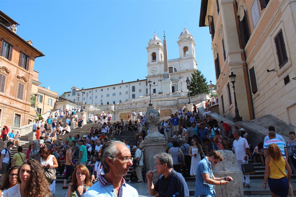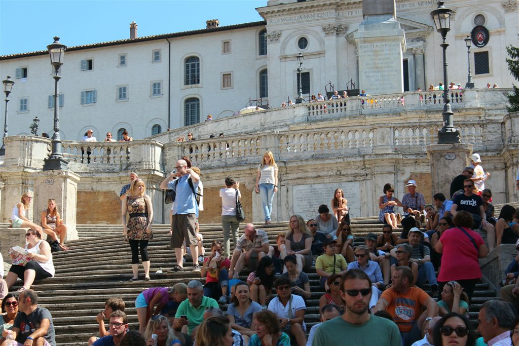 [These are the Spanish Steps. To be honest (and why wouldn’t I be), I had never heard of them before. I had heard of Rome before, however. There are 135 steps between the top and the bottom, and they were built in the 18th century so Spaniards could go up and down. It is the widest staircase in Europe, which is fortunate, because a lot of people are using them! 😉 ]