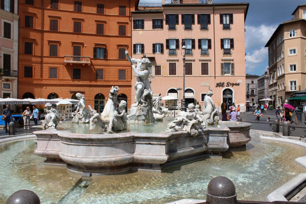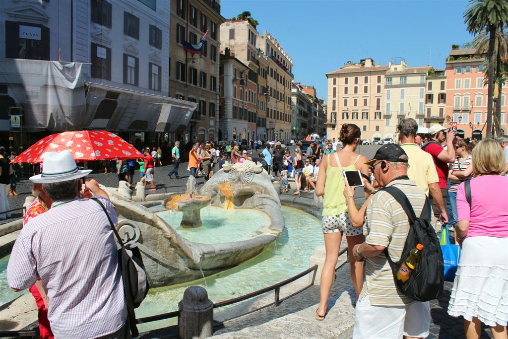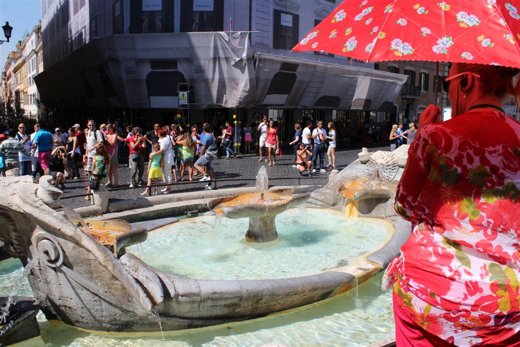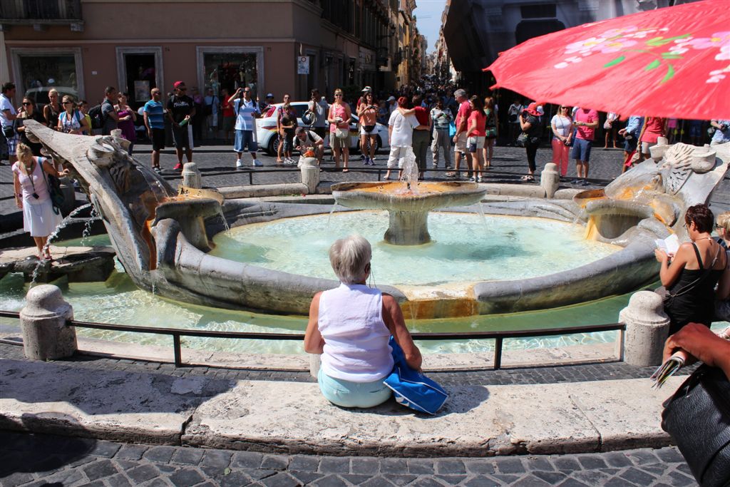 [This is the Fontana della Barcaccia (Fountain of the Old Boat), which was built in the 17th century. It’s fortunate it is at the base of the Steps, so it can catch Spaniards when they trip and fall.]