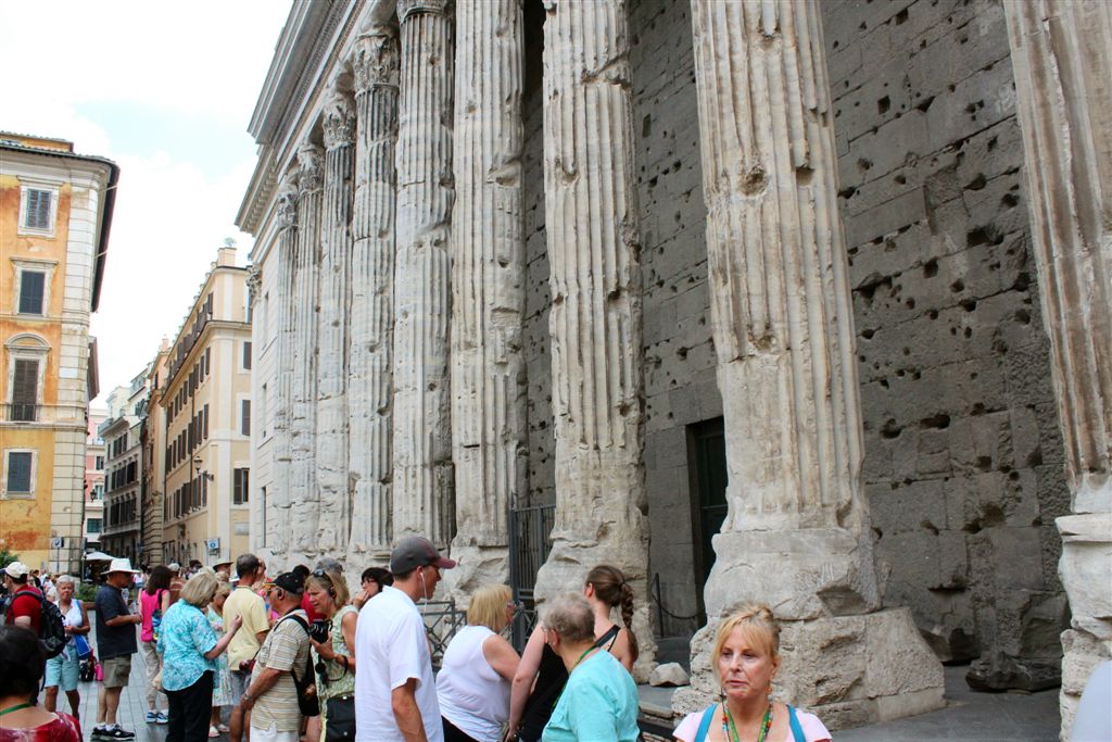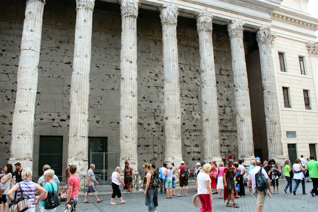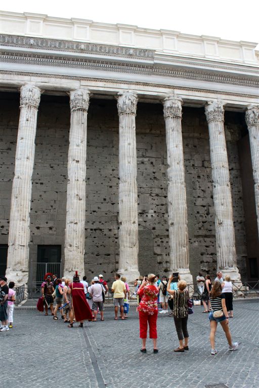 [ Well, we’re leaving it now and I still don’t know. (A certain A. Grundei subsequently advised that this is the Temple of Hadrian. Ole Hadrian really got around – remember his stuff in Turkey? Thanks, A.)]