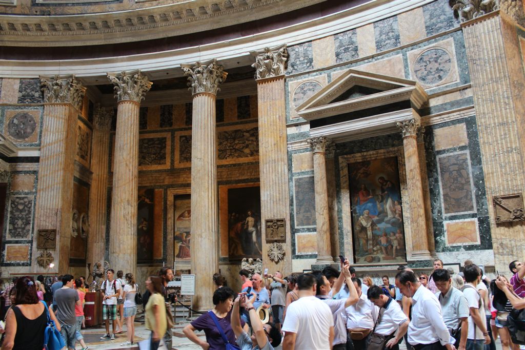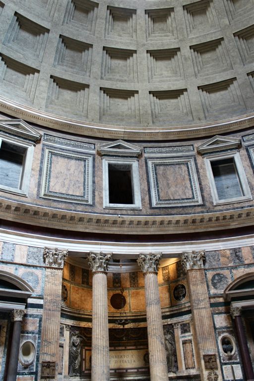 [The Pantheon, from 125 AD until the 20th century, it was the largest concrete structure in the world. It is still an active church.]