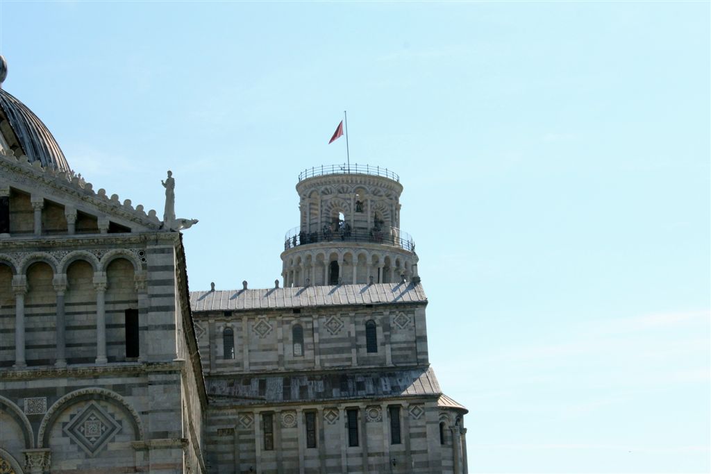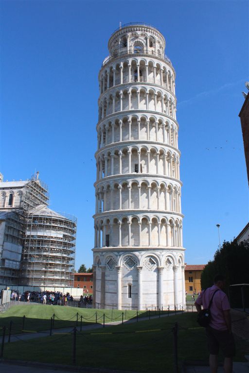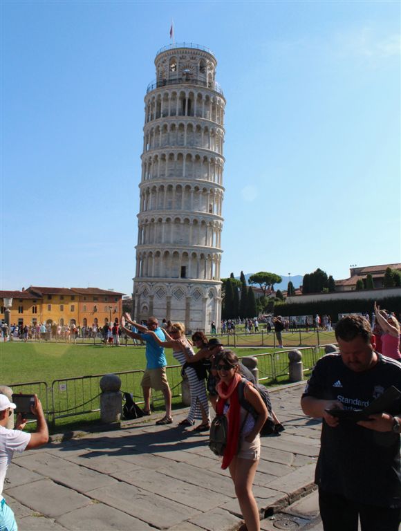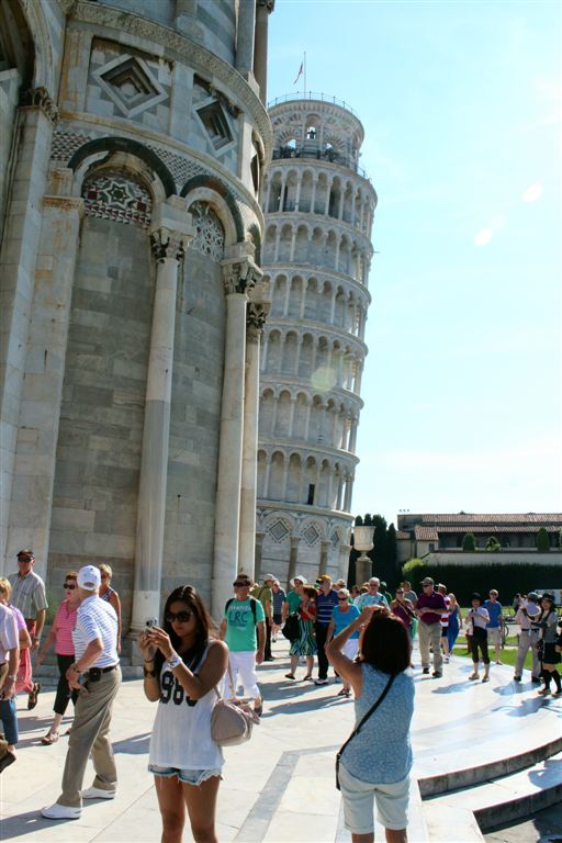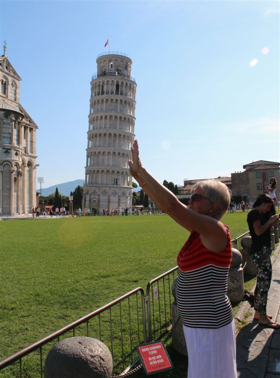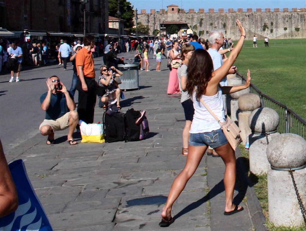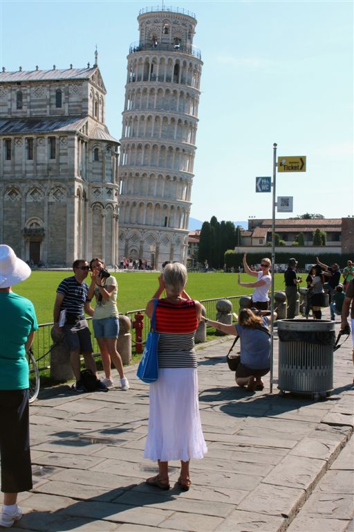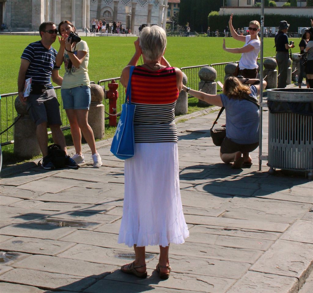 [And the supervisor performs the ritual all tourists rush in to do – she supports the Tower from falling, here with her backside. 🙂 ]