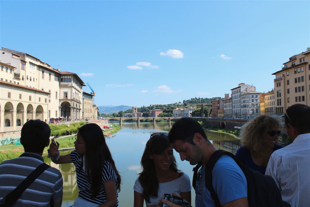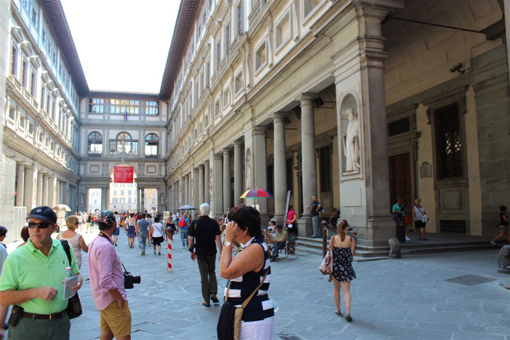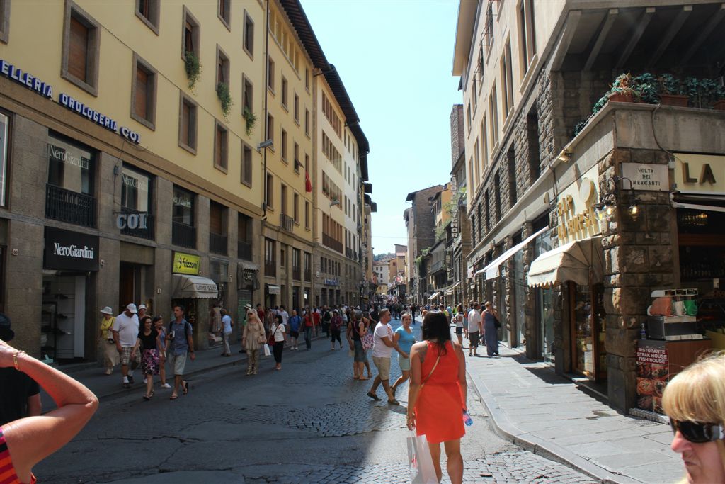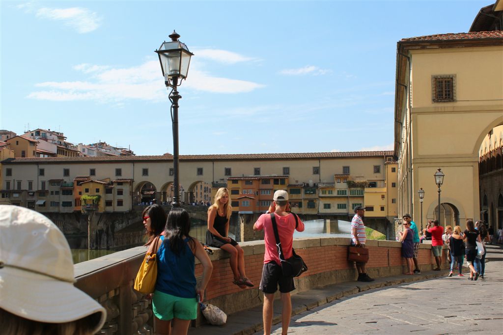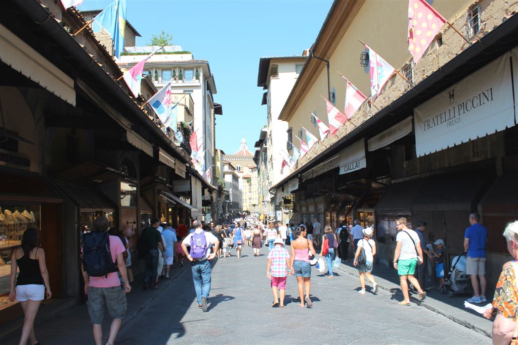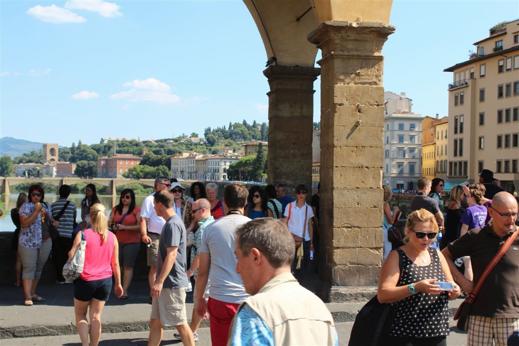 [It was time to move out to the Ponte Vecchio (Old Bridge) – we got separated from the supervisor here as she was determined to go her own way. Oh, this is walking through the Uffizi Gallery courtyard.]