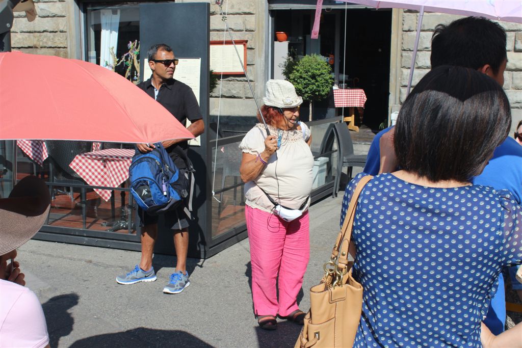 [Led by our tour guide, Rosa (lower left), we wandered through the streets of Pisa on a beautiful Sunday morning. Rosa would prove to be a real pip who drove the Gang of 17 crazy! 😉 ]