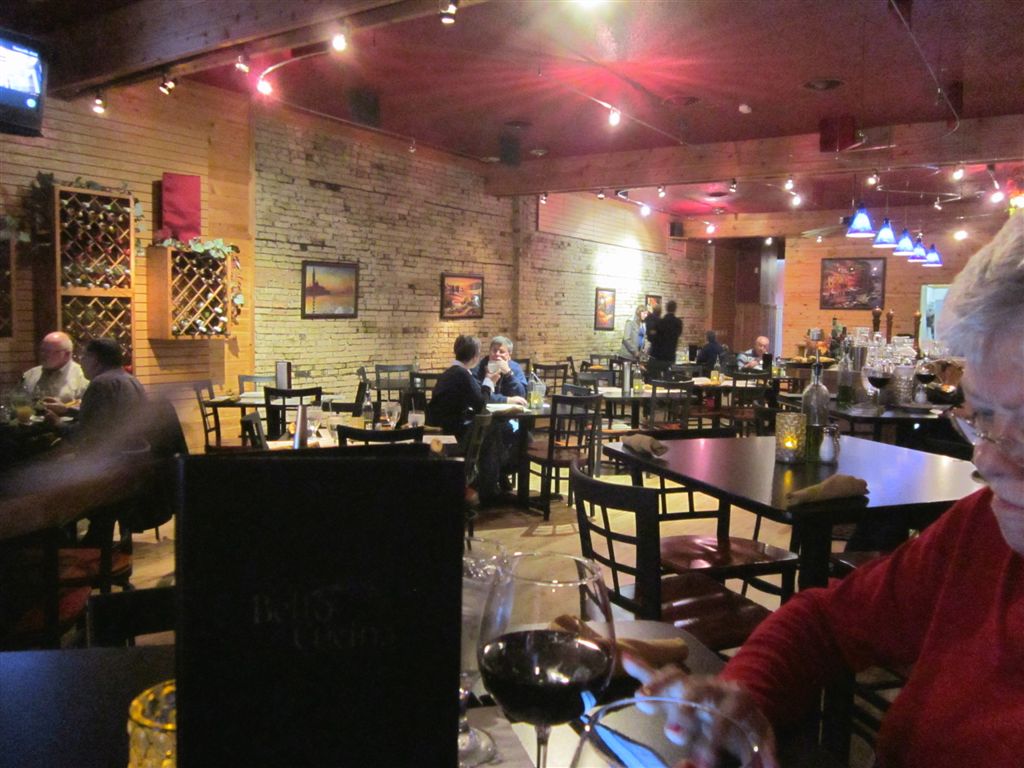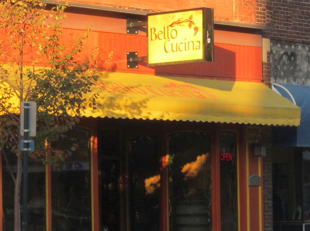 [And, of course, the first priority of any road trip is . . . where are we going to eat? As kind of a last minute decision, we decided on Bello Cucina in downtown Fergus, not far from the high school.]