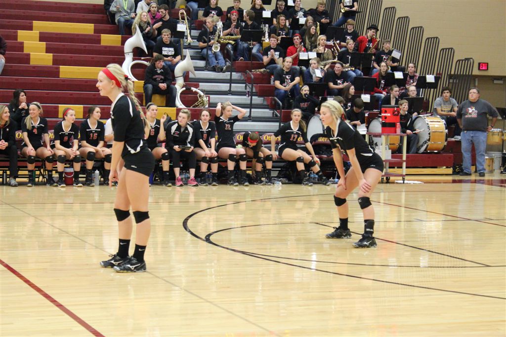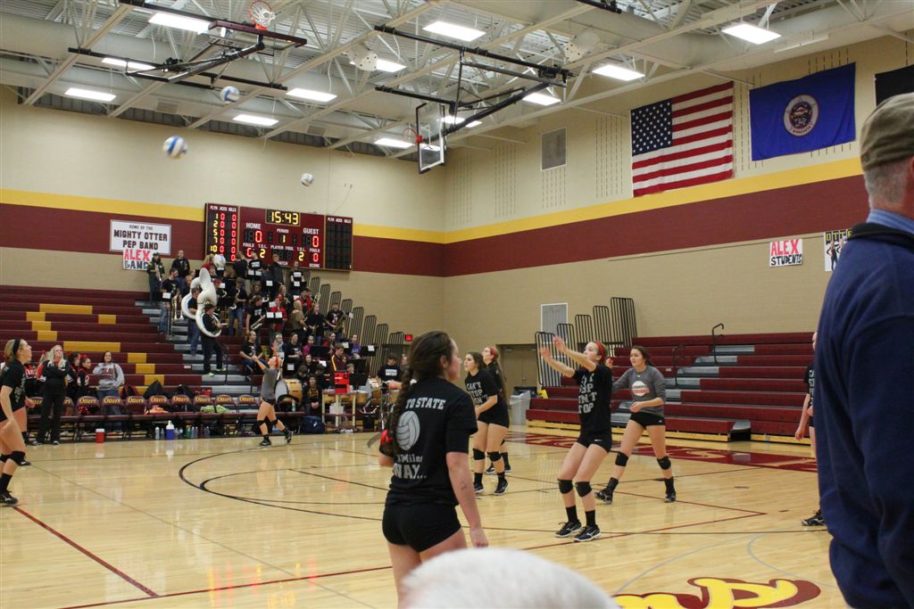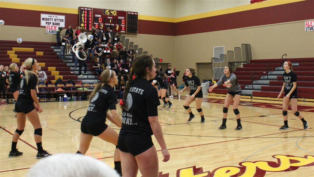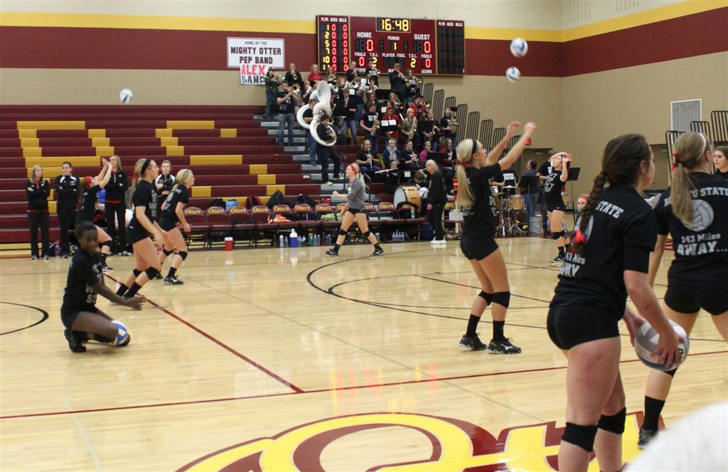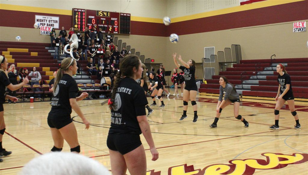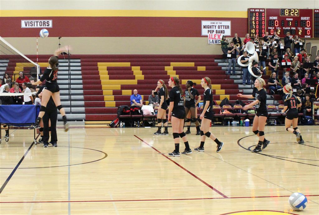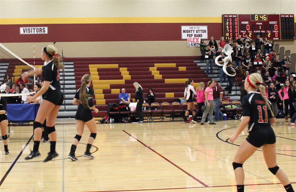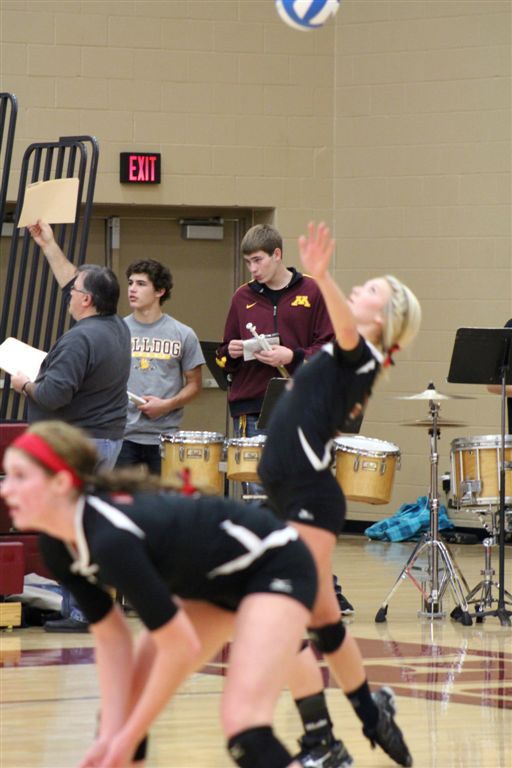 [The supervisor and I went up to Fergus Falls to see our Cardinals play the Moorhead Spuds for the section volleyball championship. It was our first road trip of the year . . .]