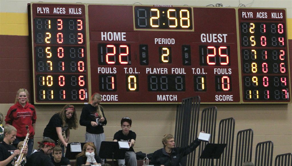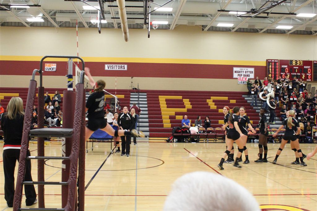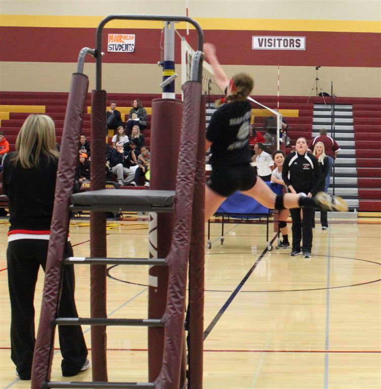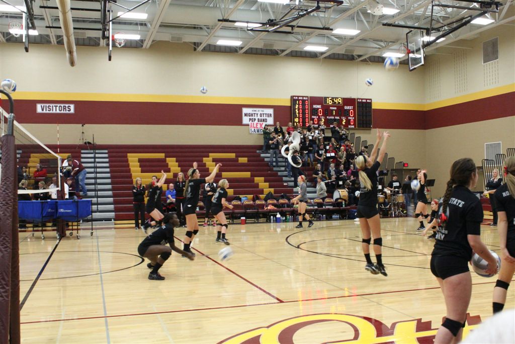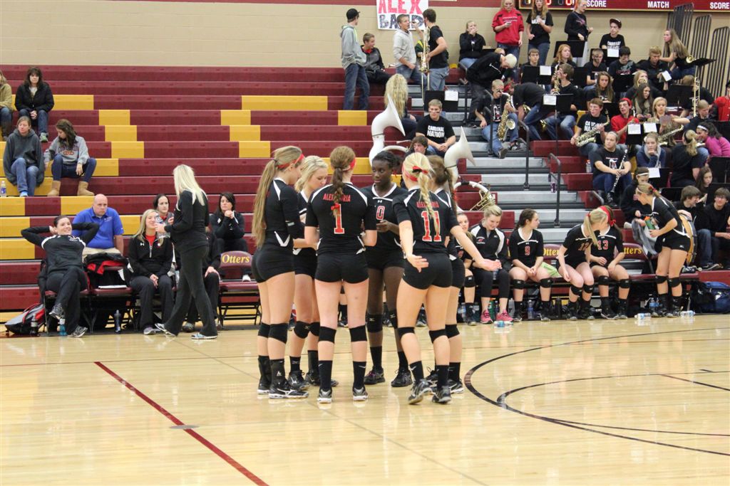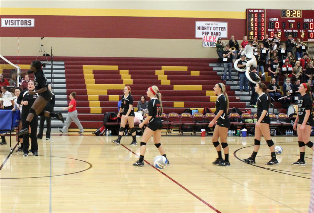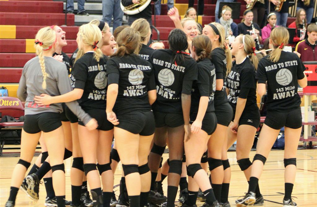 [The supervisor and I went up to Fergus Falls to see our Cardinals play the Moorhead Spuds for the section volleyball championship. It was our first road trip of the year . . .]