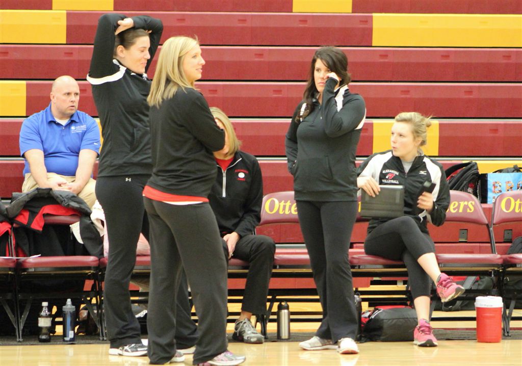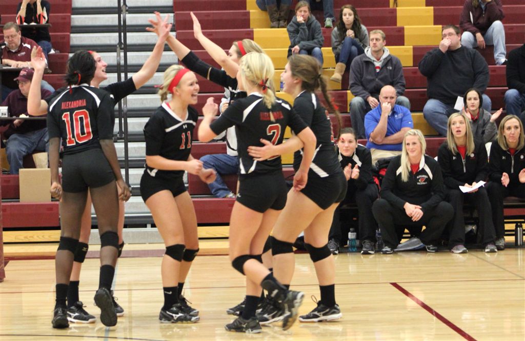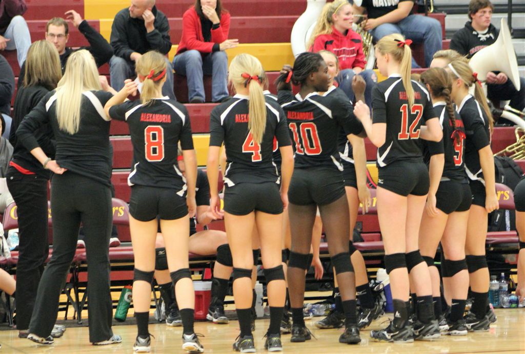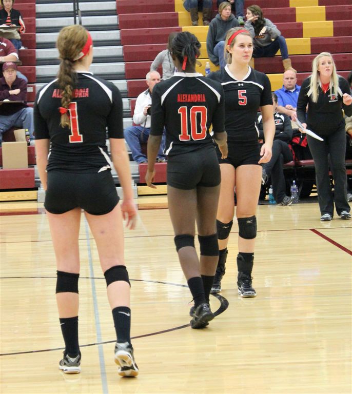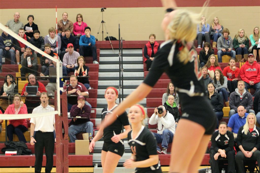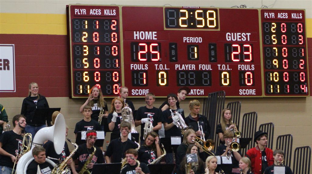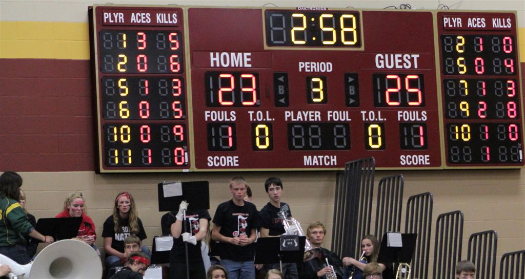 [The supervisor and I went up to Fergus Falls to see our Cardinals play the Moorhead Spuds for the section volleyball championship. It was our first road trip of the year . . .]