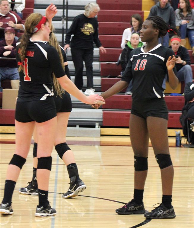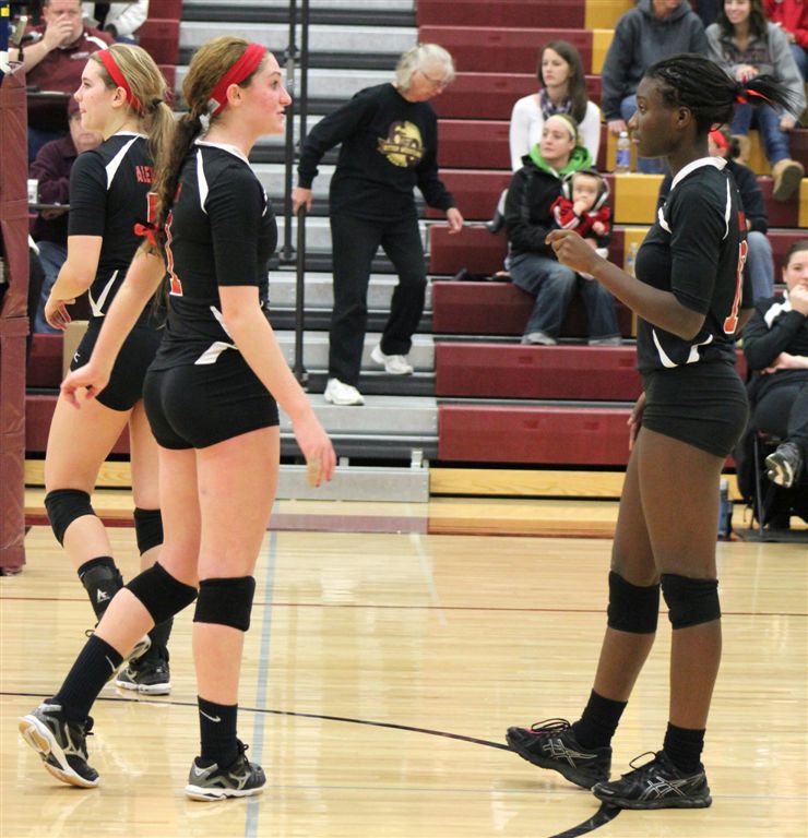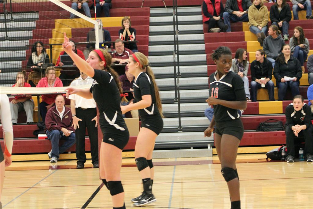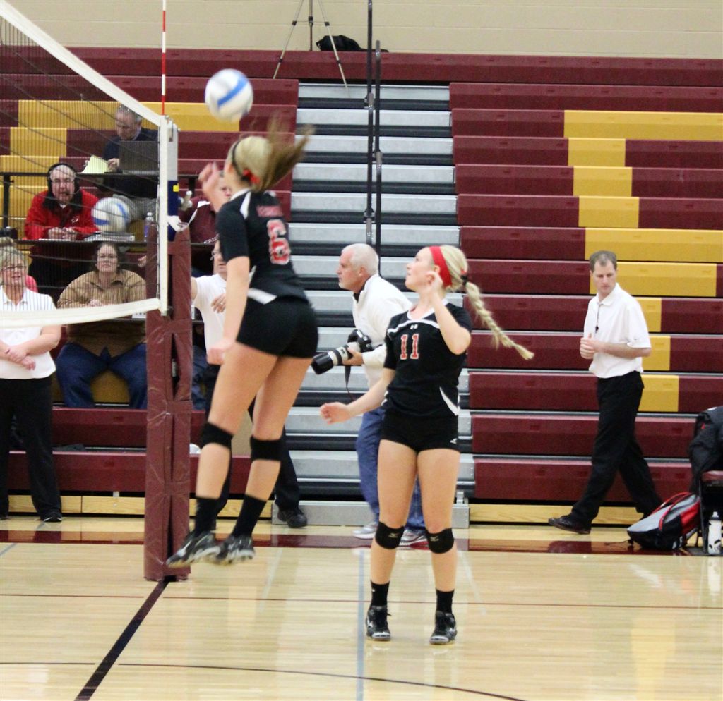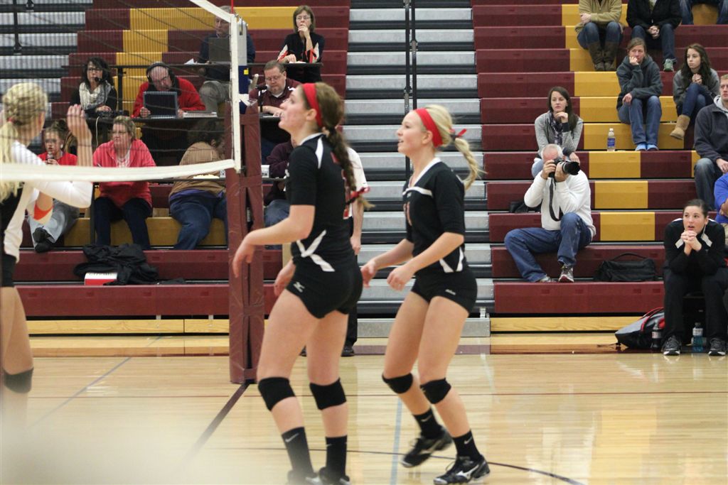 The Spuds played really well and deserved to win. The Cards fell way behind early in every game and that has to be physically and mentally stressful playing catch up all the time. The Cards never were able to maintain any successes. Looking back, it’s amazing the games were as close as they were. We must have a set a record for net violations in this match – lots of free points for the Spuds. And though we served well this time, we had several instances of not playing the ball, thinking it was going out and it didn’t. But it was a fun season – and congratulations to the team for their conference championship. The team was very entertaining to watch . . . and has now made the supervisor a big time fan. She said she couldn’t sleep after we lost this game! 😉 Good luck and thanks to seniors Amanda C and Emily, though we’ll see them in other sports yet this school year. And we look forward to next year!