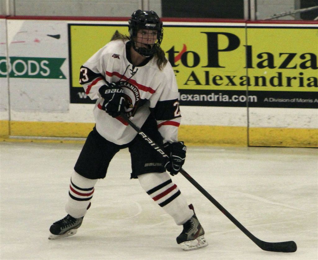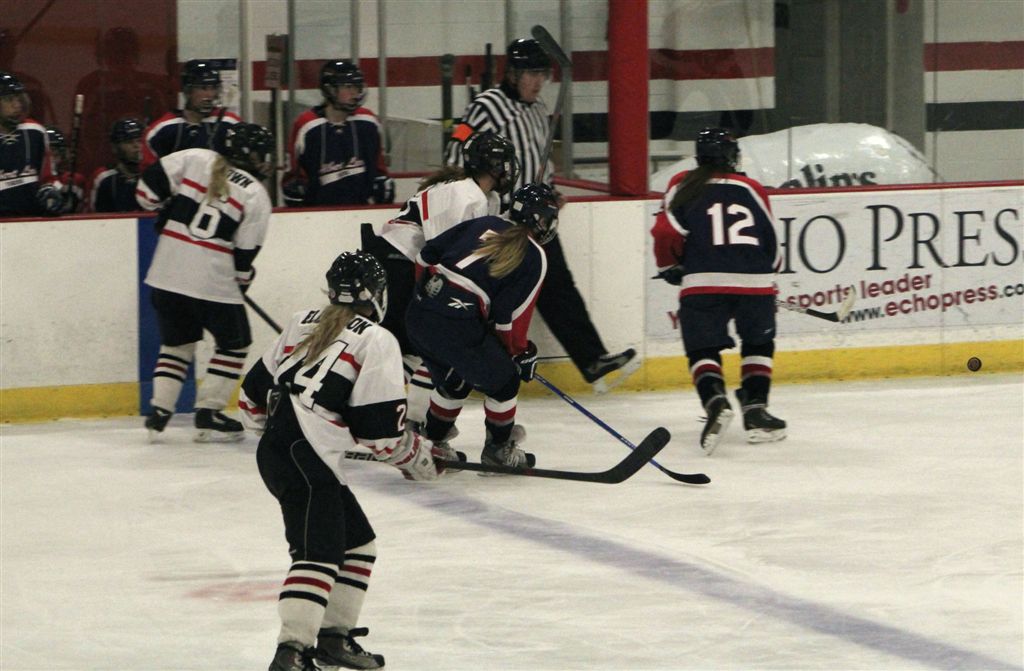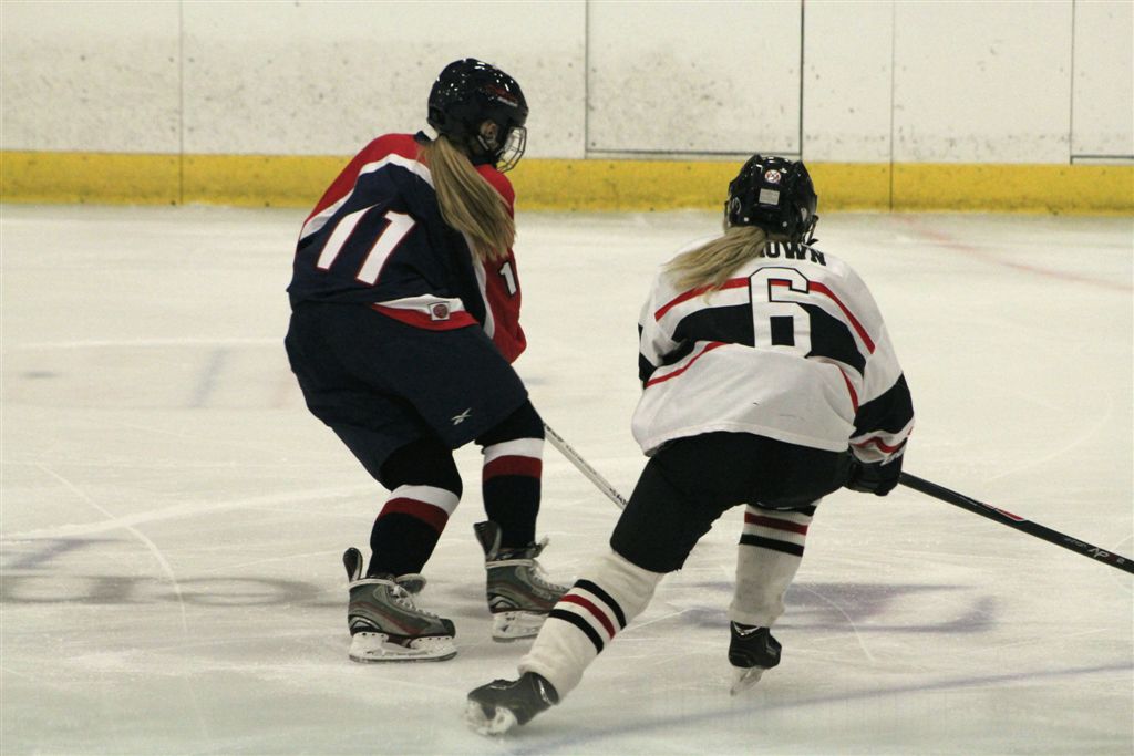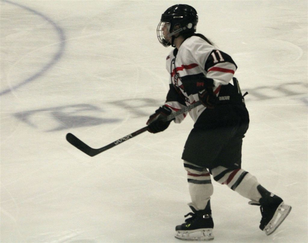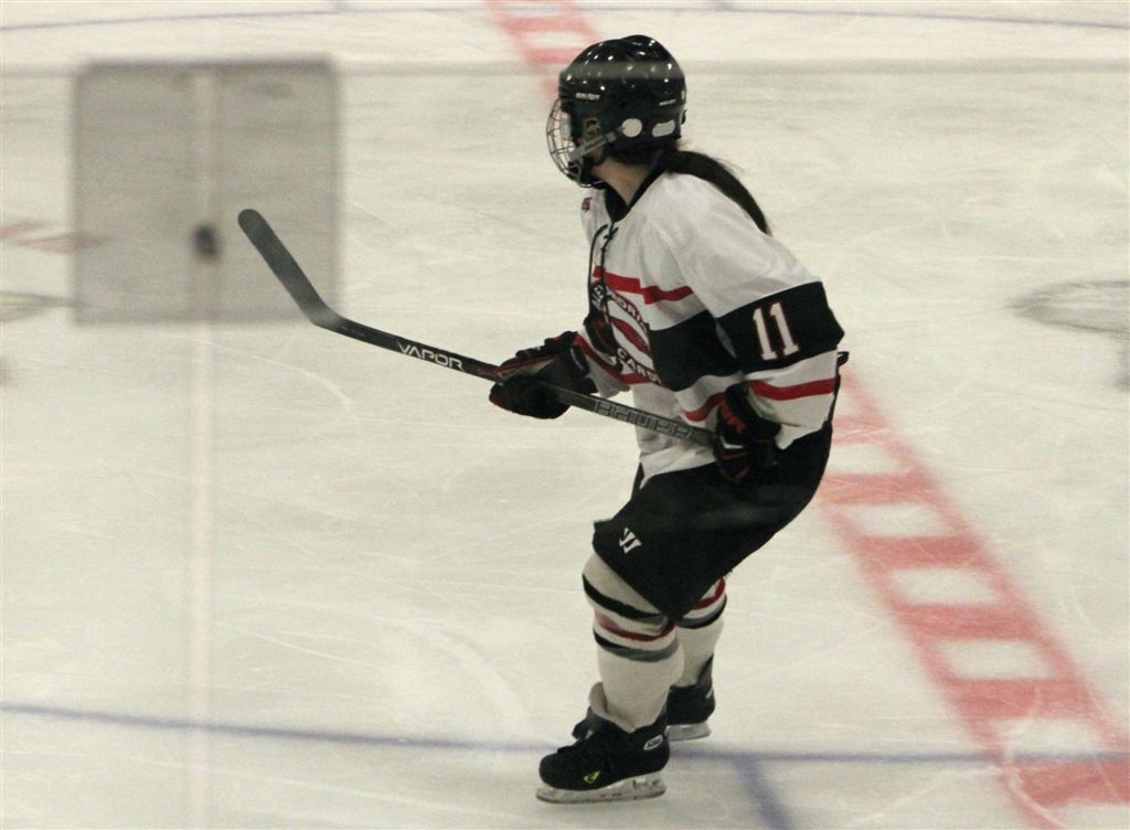 [And here we go . . . with sophomore forward, Hanah Hansen (11). As you’ll recall from last year, when Hanah was on the fast developing 3rd line as a freshman, she is the grand niece of Oscar-nominated actor, John Hawkes.]