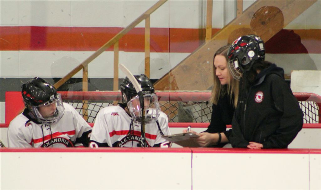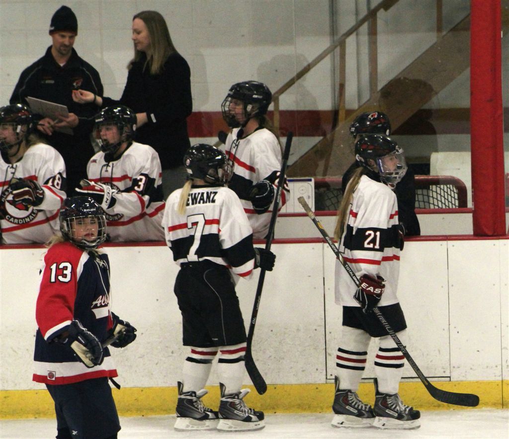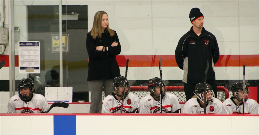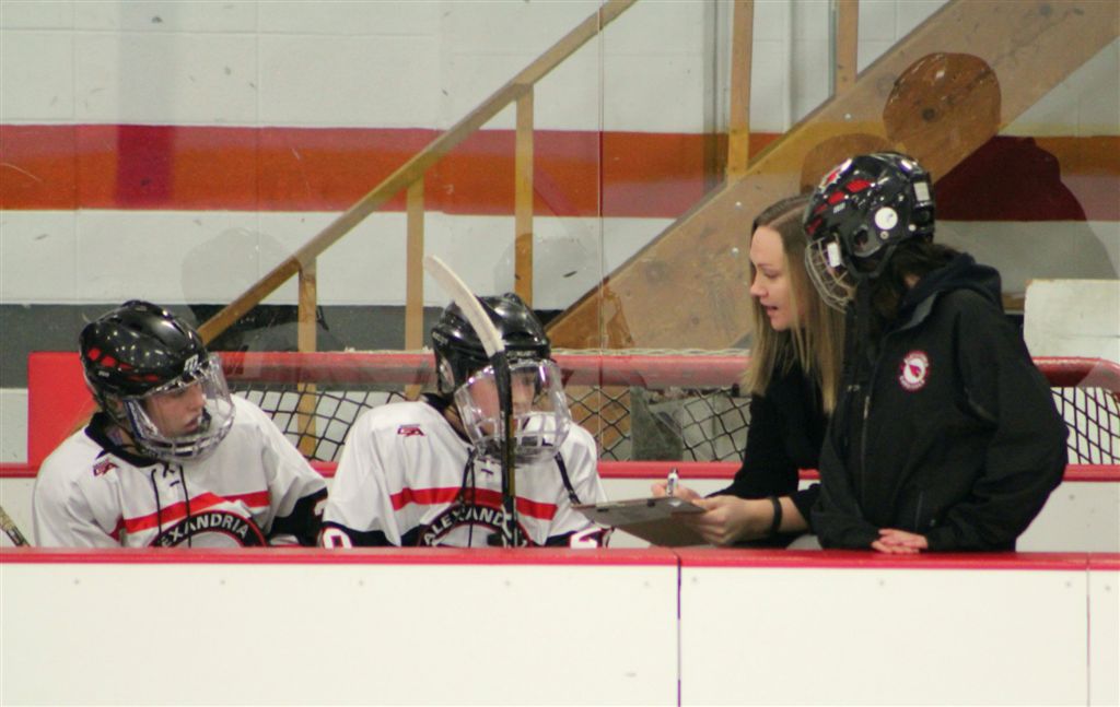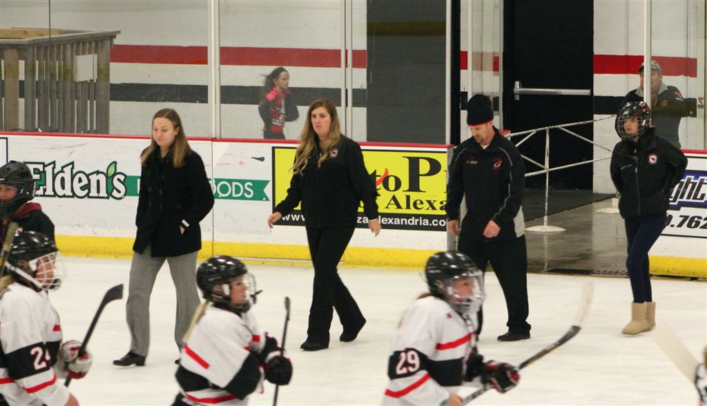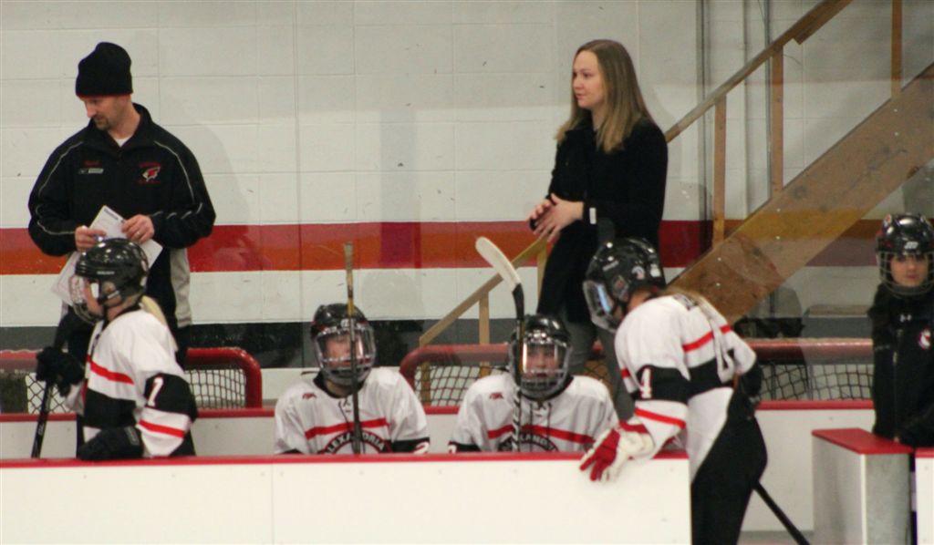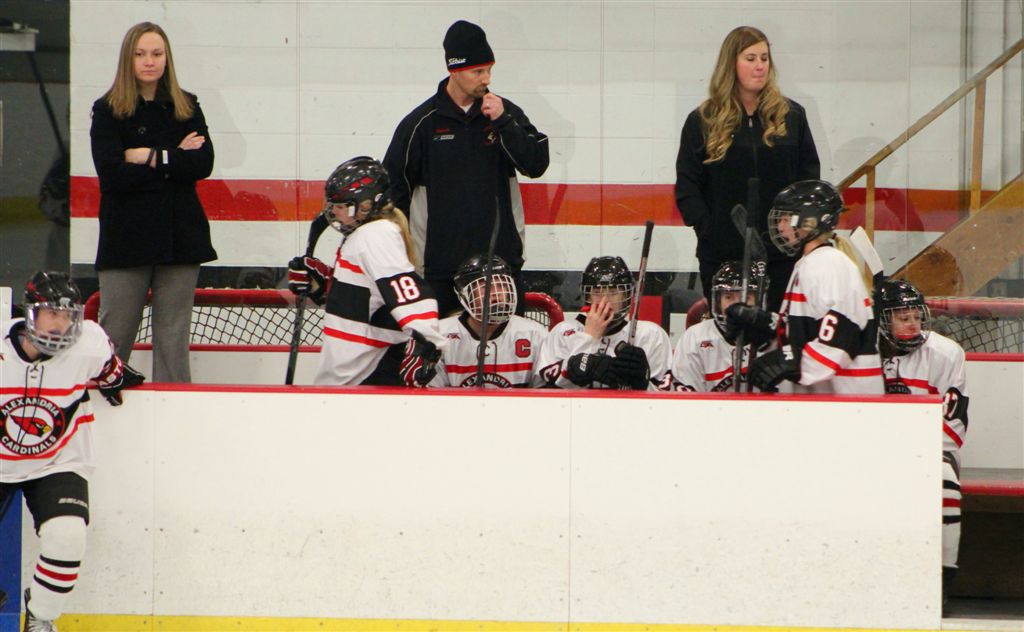 So, now you know. 🙂 Friday was the season opener for the Cardinal girls’ hockey team. We lost six key seniors off last year’s team – and our participation numbers are down. Yet, we enter the new season with optimism about another state tournament run. We had a turnover in the coaching staff. Blair Hovel, who was the assistant coach when we won the state championship in ’08, is back as the head coach. Ashley Secord-Holmes, who was an all-state defenseman on the ’08 team and has graduated from North Dakota where she played D-1 hockey for four years, is now an assistant coach. And when we look back, we started following girls’ hockey in ’03, when Ashley’s class were 8th-graders, and are now beginning our 11th year as Super Fans! And our Fans-ness hasn’t waned.