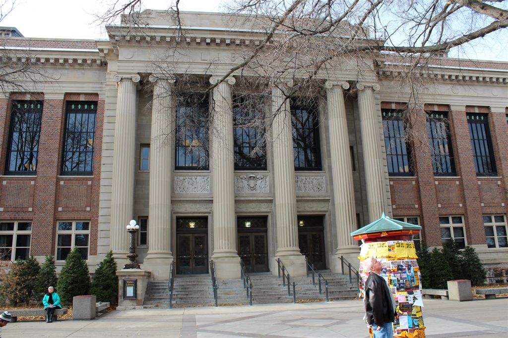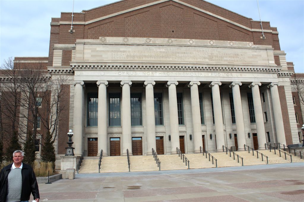 [Northrop Auditorium recently underwent a multi-million dollar renovation. Cam tried to break in, to no avail. I once had an Econ 101 class here from Walter Heller, President Kennedy’s economic advisor – thousands of kids in the class.]