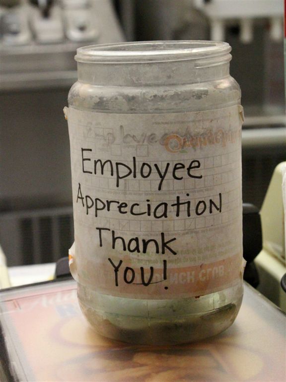 [After the hockey game. still stuffed with pizza, the supervisor decided she needed a DQ Blizzard to calm her tummy. At the DQ, a sign of the times?]