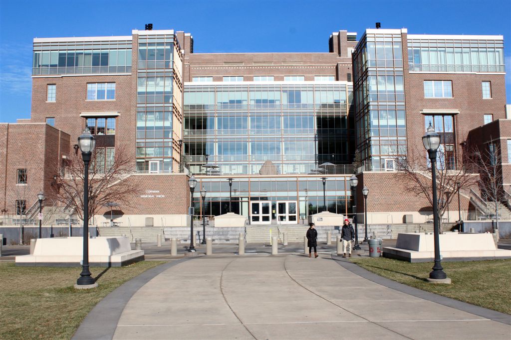 [We last left you entering Coffman Memorial Union. Now we’re going out the back door – the side that faces the Mississippi River.]