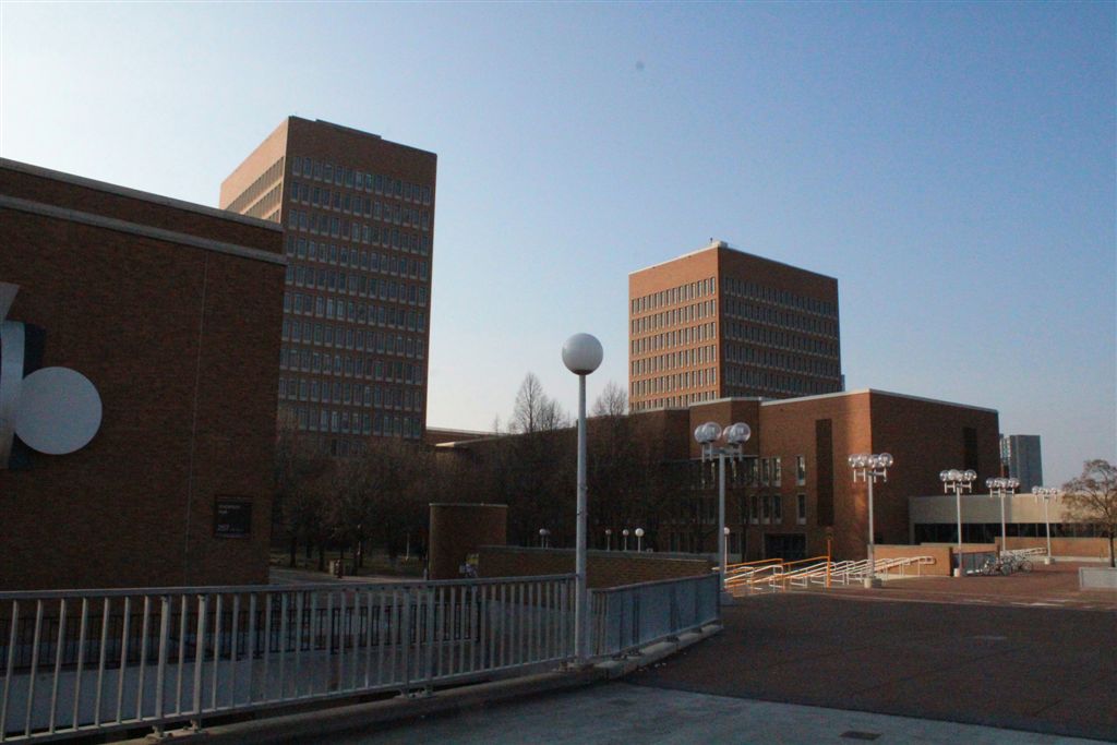 [The bridge, and the two buildings on the left that contained the West Bank classrooms for upper division liberal arts classes – the Social Science Tower (SST) and the Business Administration Tower (BAT). Those were pretty much brand new buildings in my era.]