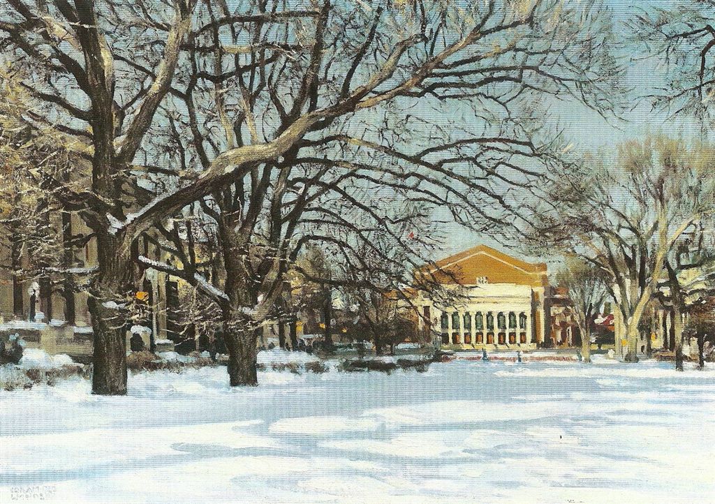 [In recognition of yesterday’s beginning-of-winter weather, we’ll lead off with the mall from the Alumni Association’s Christmas card. Thanks, Chad!]