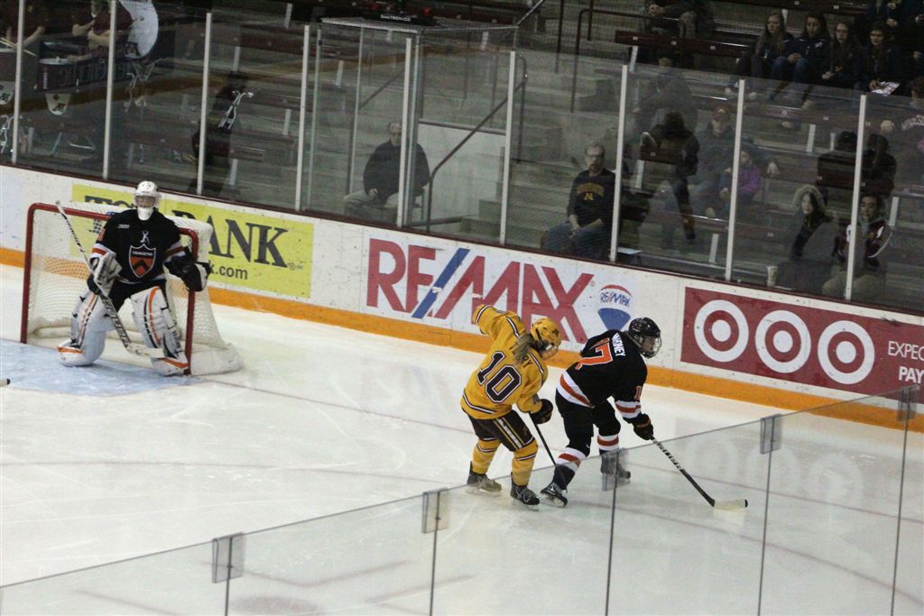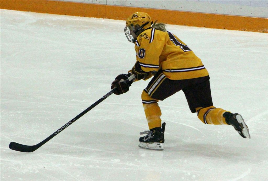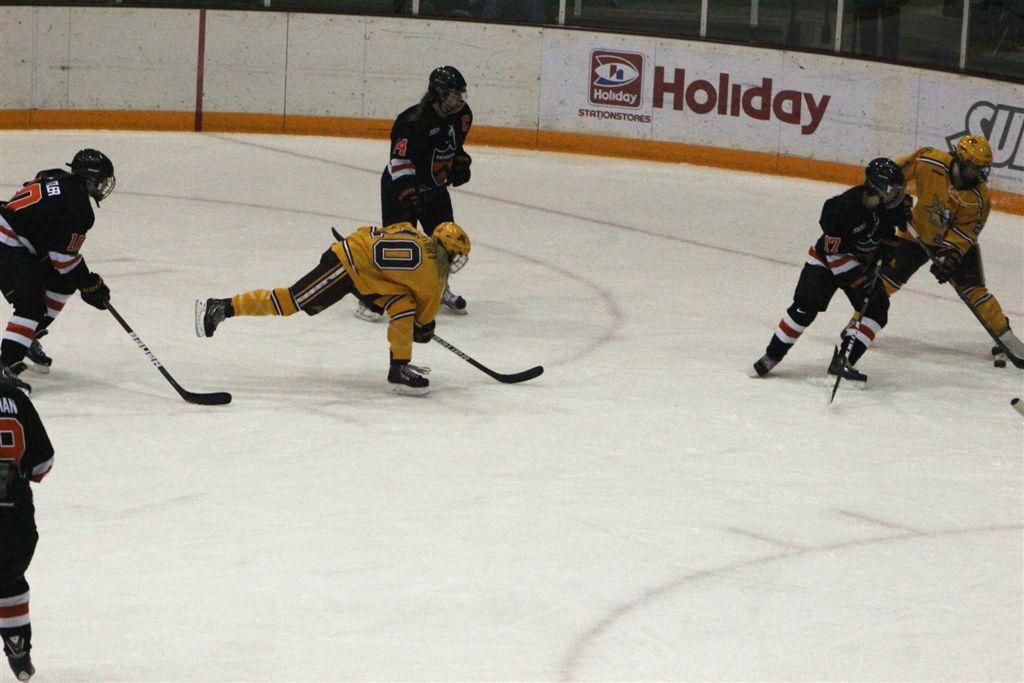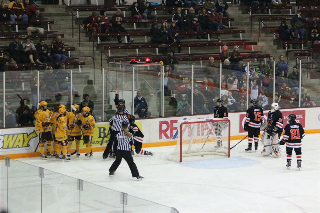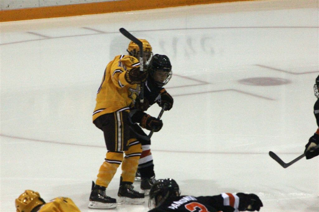 [Some how, from the bottom of the pile, Bethany scored with 10 seconds left in the period giving the Gophers a 6 – 1 lead after two.]