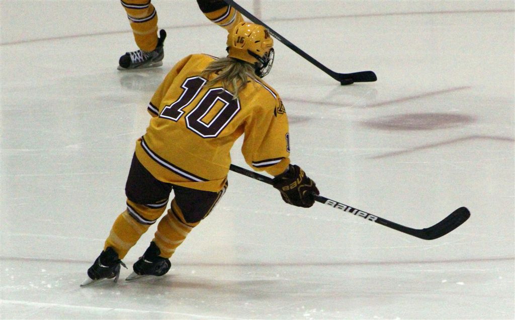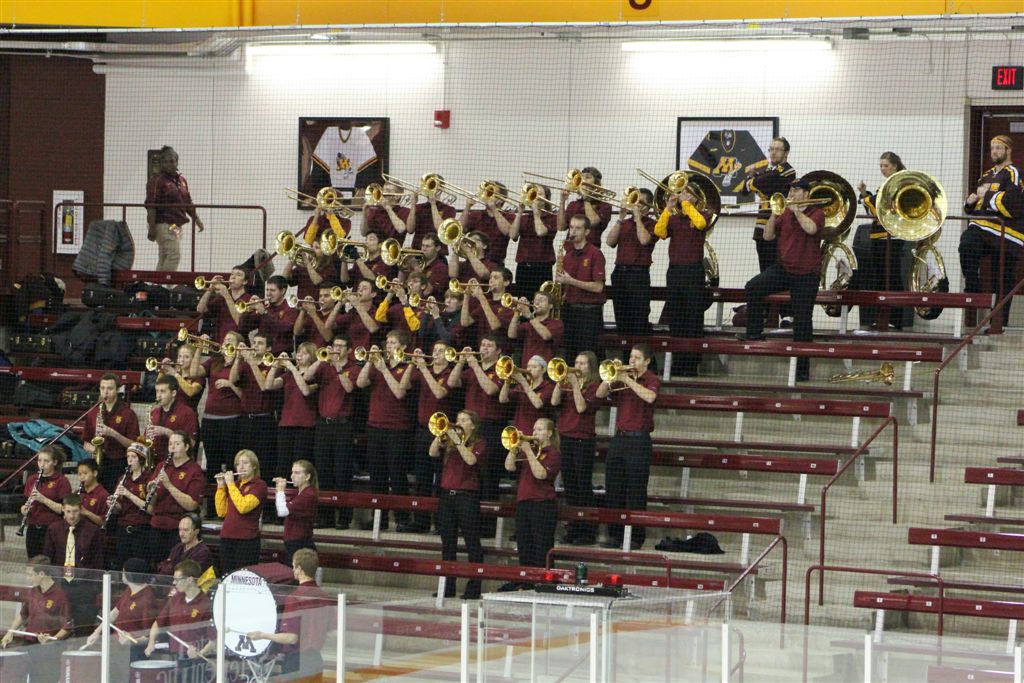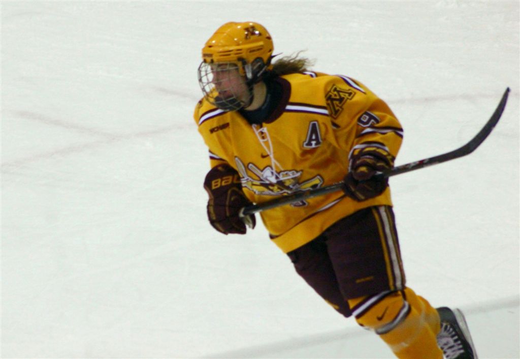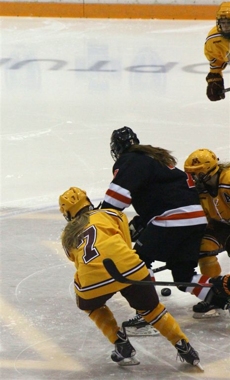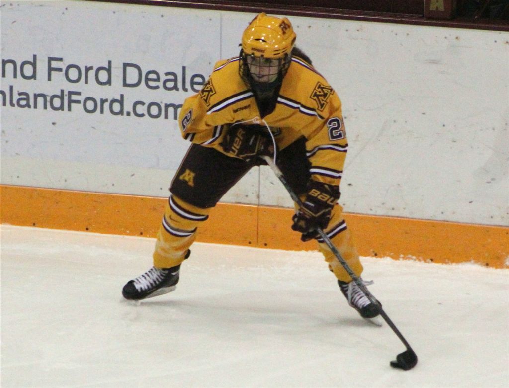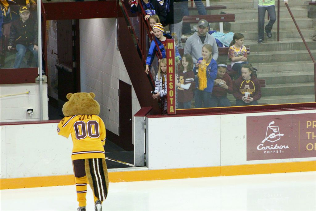 Watching the Gophers play is a thing of beauty and a joy forever. Oh . . . did somebody already use that line? Anyway, it’s not only their overall team speed but the continuous motion that makes them special (ask what made Wayne Gretzky so great?). When they have the puck in the offensive zone, the wings will either criss-cross in front the goal, thus being able to receive a pass from behind the goal or from the points for point-blank shots; or even prettier, if the puck is on the goalie’s left side, all three forwards will circle, counterclockwise at equidistance apart, that face-off circle until the forward coming around the top is open for a pass from a trailer or from the point, again for a point-blank shot on goal. And with a shot, a teammate will invariable take up position on the goalie’s weak side for a rebound. Yup, it’s as pretty as a hot fudge sundae, with nuts! 😉