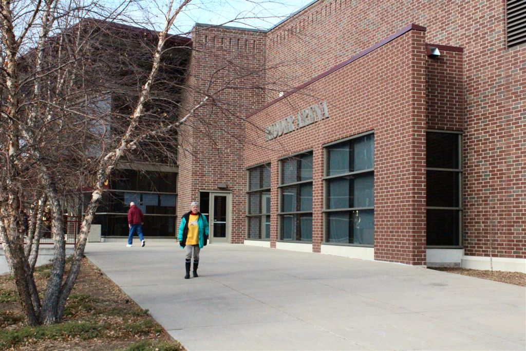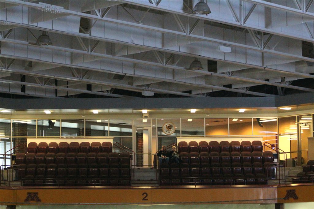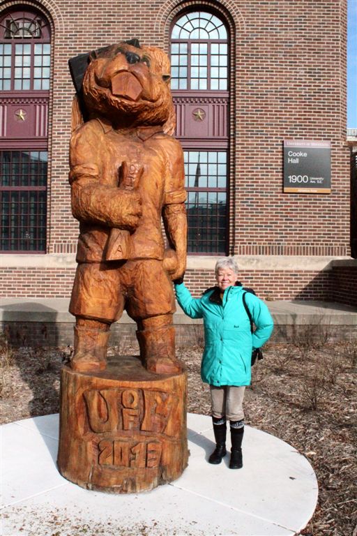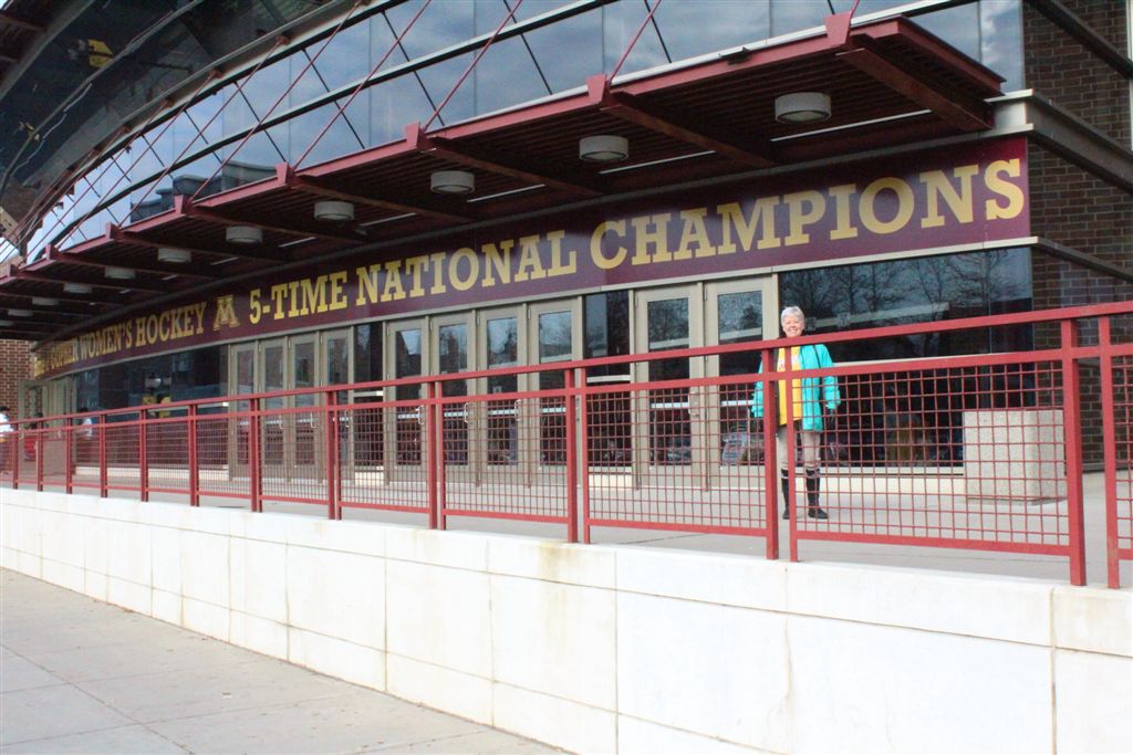 Anyway, walking across campus to Ridder Arena, we had to stop for this photo op with Goldy. You will note Cooke Hall in the background – one of the few buildings in this part of the campus that I still recognize. It used to be the swimming arena – I have no idea if it still is. It was right at the open end of old Memorial Stadium.