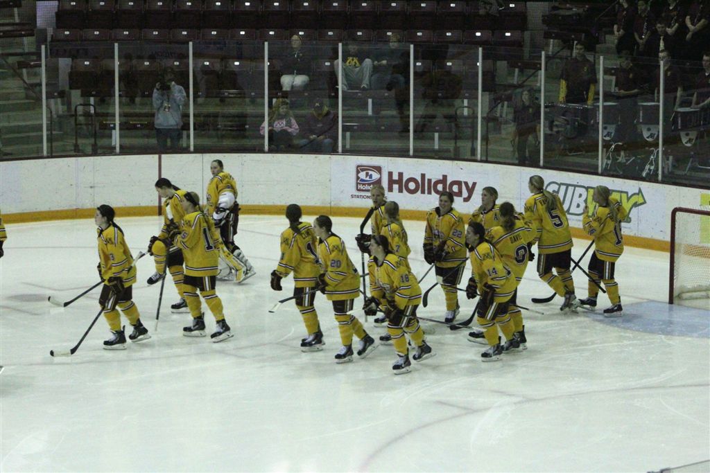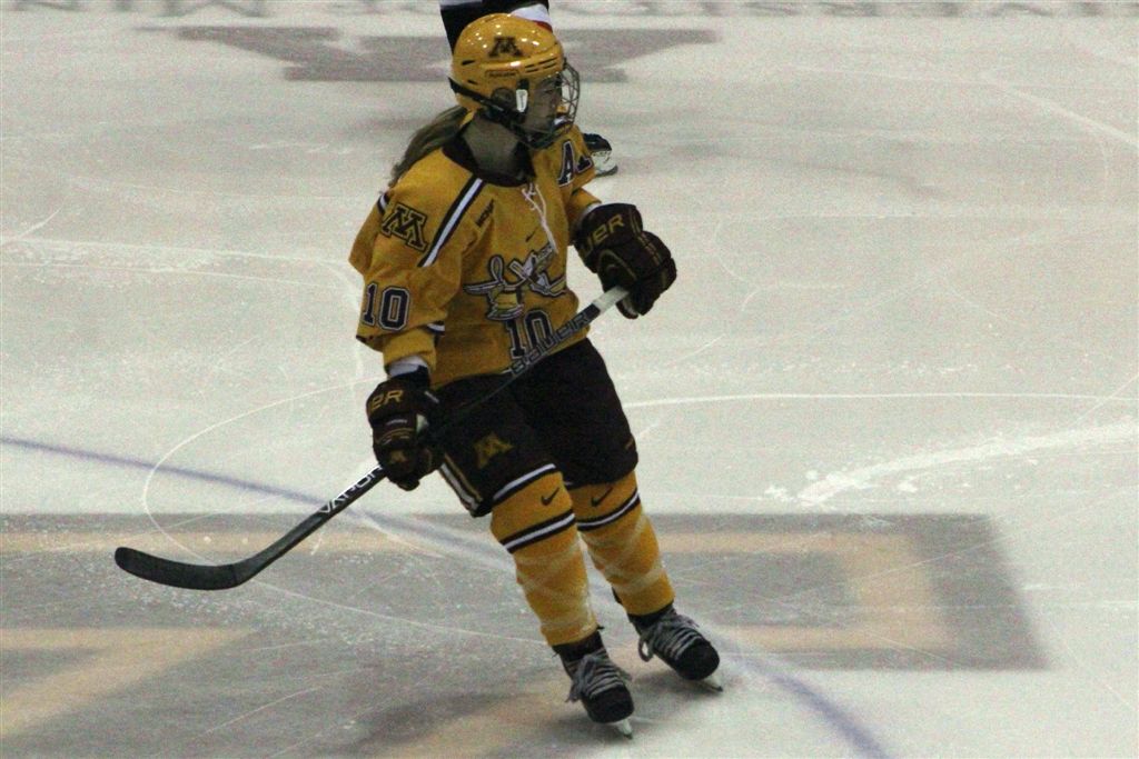 [Draws it back to Rachael . . . (At some point in the proceedings I mentioned the Gophers seemed to be winning all the face-offs – another key to success.)]