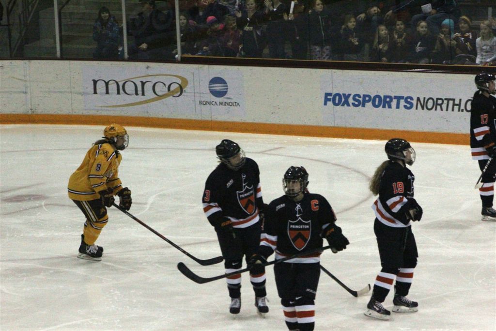 This game took place a week ago Sunday. Talk about not meeting your press deadlines! Anyway, as you’ll recall, the Gopher women’s hockey team beat Princeton 9 – 1 in that match-up. And lest you think the Tigers are not a competitive hockey team, the Gophers just beat Ohio State twice this past weekend in Columbus by almost exactly the same scores.