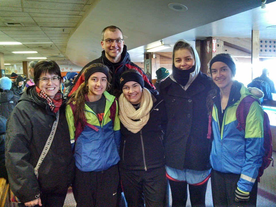 [With their proud coach, Mark Nelsen, who promised them he would be there if they made it! 🙂 Hopefully, Mark will have to come out of retirement for a couple more trips to Portland. The girls are just sophomores.]