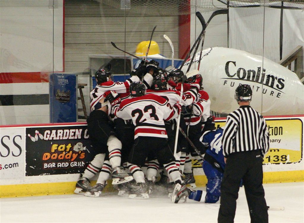 [Then, about 3 1/2 minutes into OT, Parker Revering scored on a long slapshot for the win!]