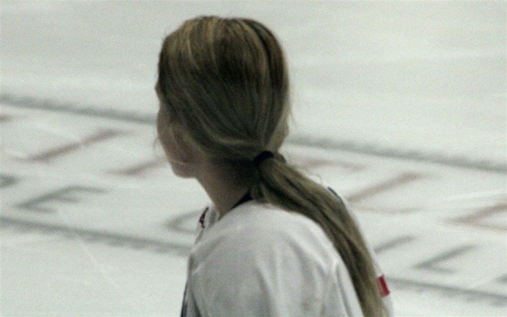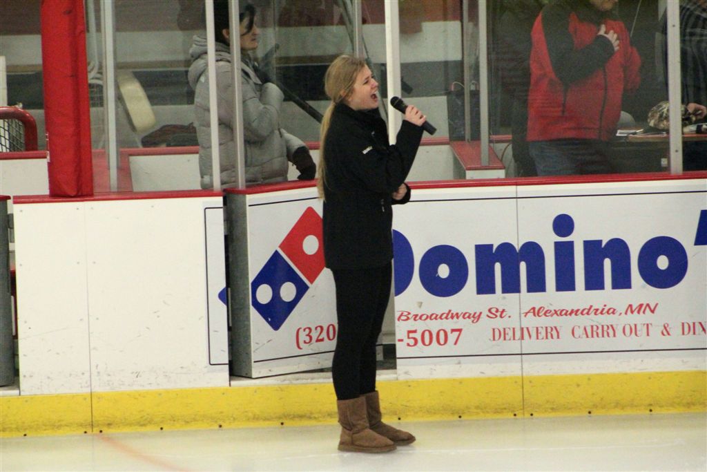 [She was still on injured reserve for hockey, but recovering nicely, and had a beautiful voice.]
