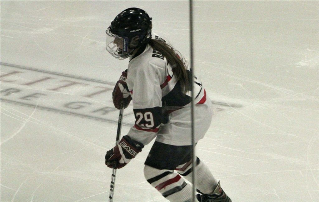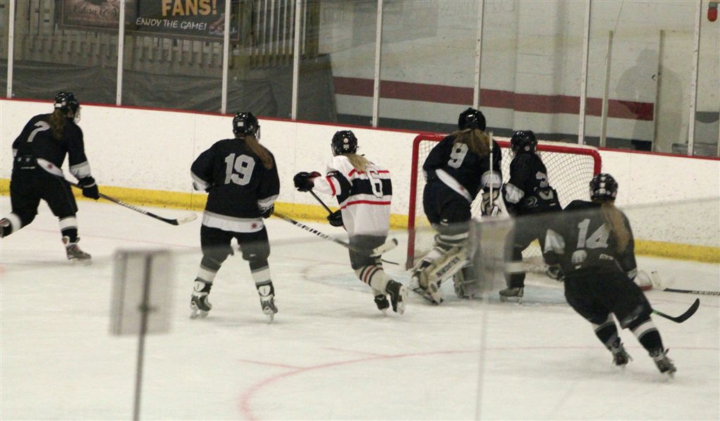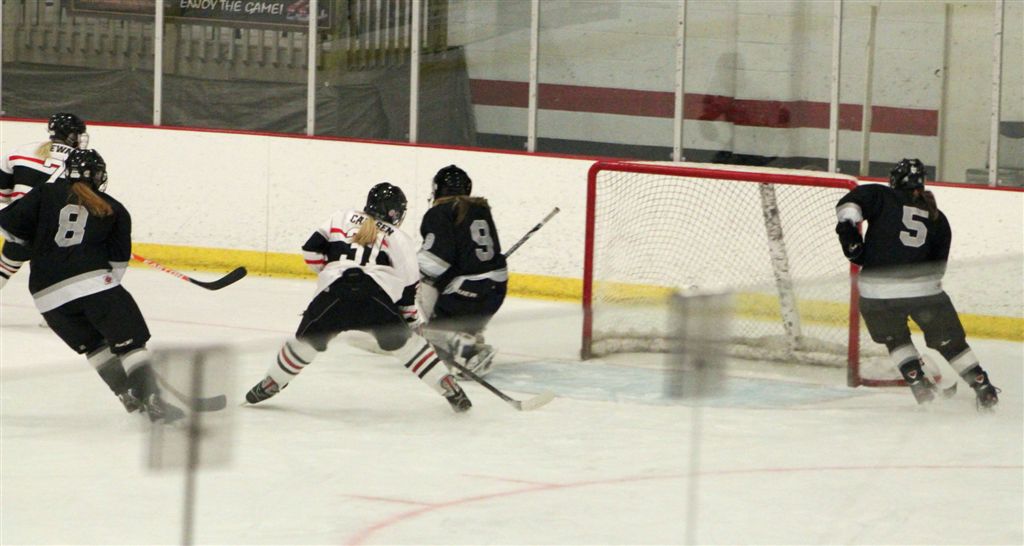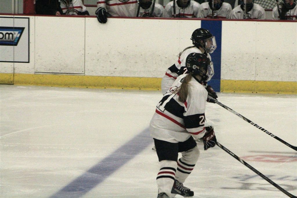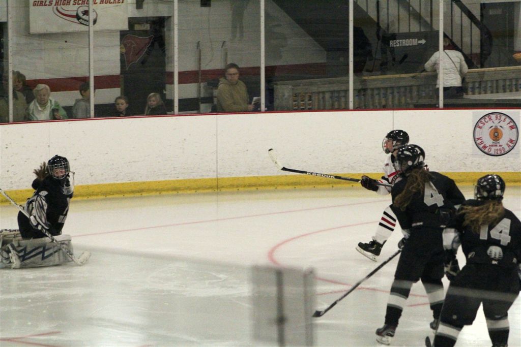 [Yup, a Cardinal GOOOOAAAAALLLLLL! 🙂 McKenzie Revering on a shot from the point just 18 seconds into the game. After three games in a row where we had trouble buying a goal, maybe our luck was changing? ]