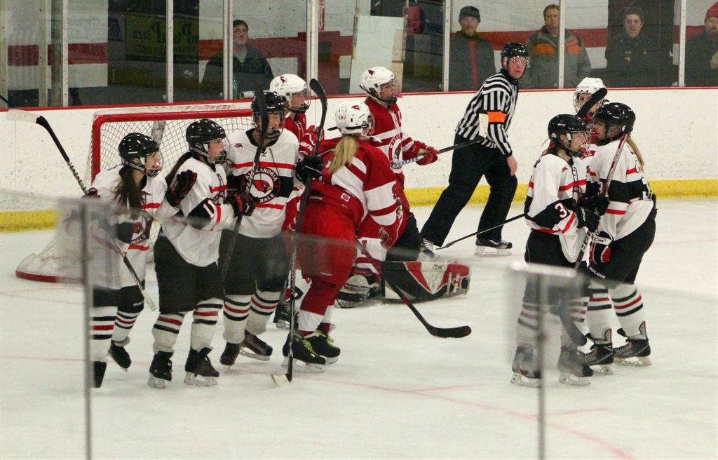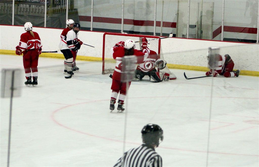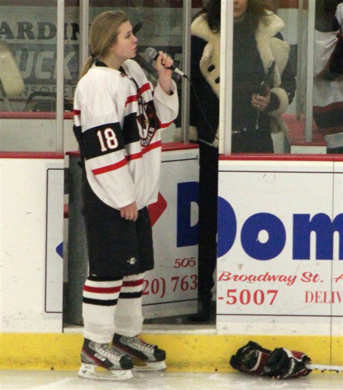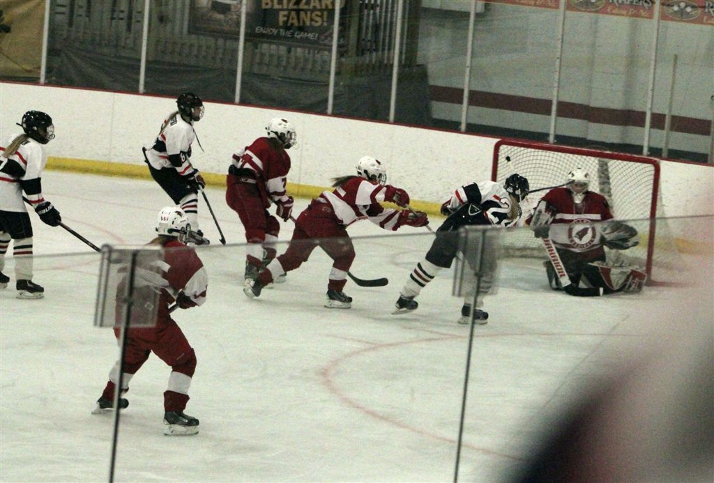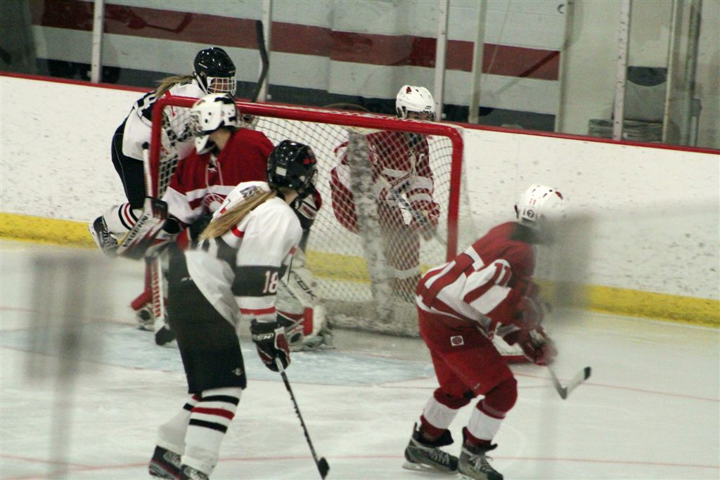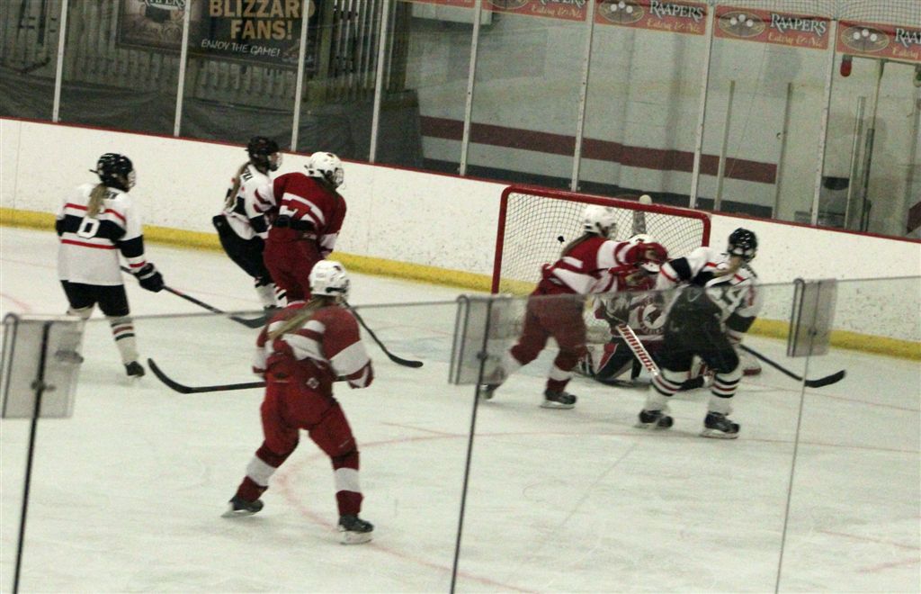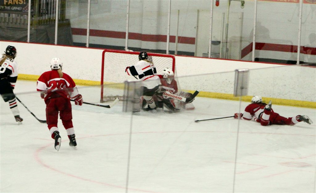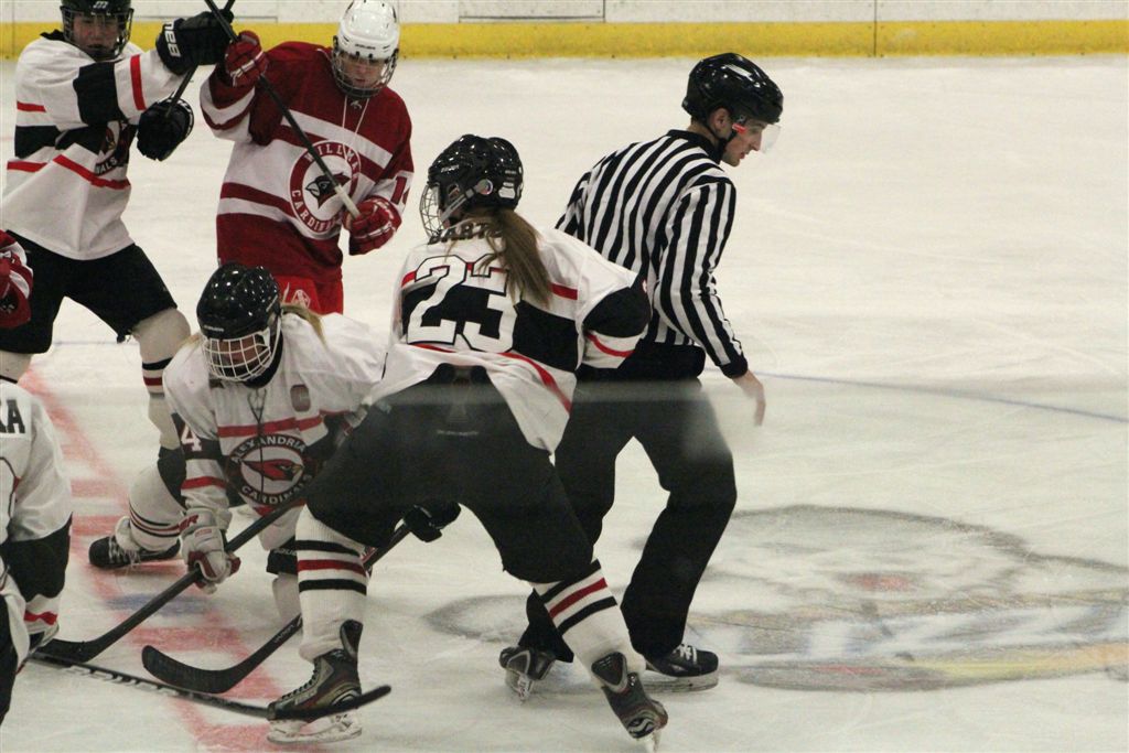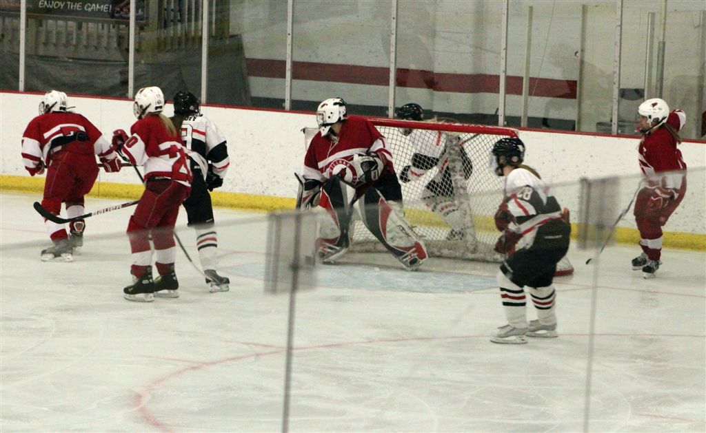 [The 8th & 9th grade boys (bantams? I can never get the names right?) played an intra-squad game as part of a fundraiser for a hockey mom.]