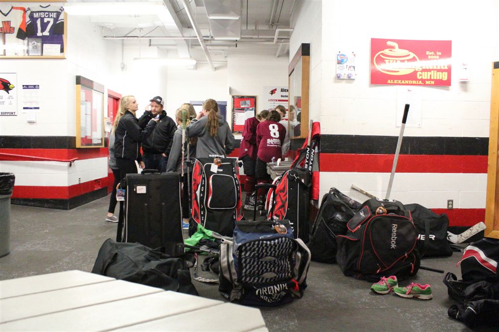 [The supervisor and I arrived early as we always do to catch as much of the JV game as we could. But we had failed to read “the instructions.” It was announced (by e-mail) by the school that the JV game had been cancelled because of a scheduling conflict. Willmar’s band was also performing that night, a band that contained hockey players. At the high school level, band tops hockey.]