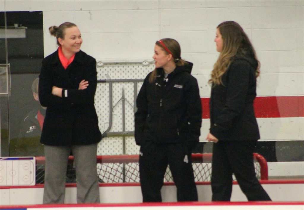 [Ashley and Brittin bracket a player (?) in civvies between them. We have had some injuries, as all teams do, and it’s also the time of year when colds and the flu can sweep through schools.]
