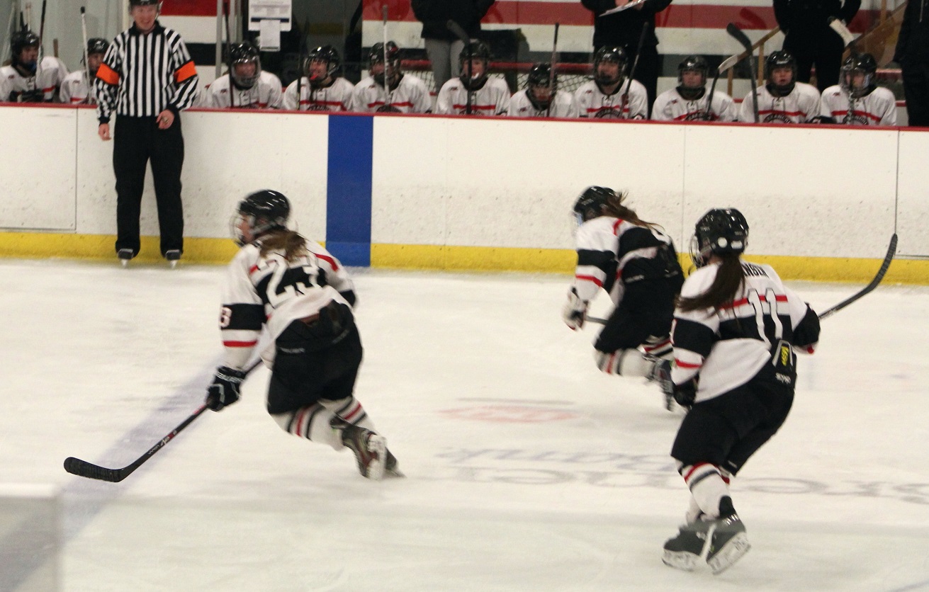 Pequot got a penalty 7 seconds into the game – don’t ever think I’ve seen one that fast before – and Mel scored on the power play. And you know the drill – “If Mel scores one goal, she always scores two!” And she did, in the 3rd. In the 2nd, Karina, Nicole, and Kaila scored. Bailey looked really good in goal. A solid 5 – 1 win.