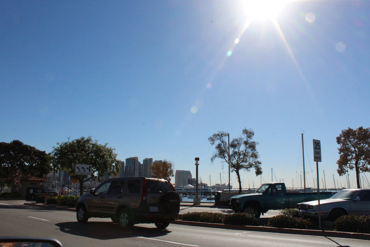 [San Diego. Our only time spent downtown was this, driving away from the airport.]