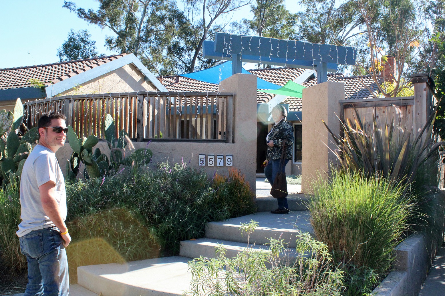 [Arriving at De-niece’s and De-nephew’s in San Diego . The supervisor was delighted to see the progress their front yard garden had made since our last visit.