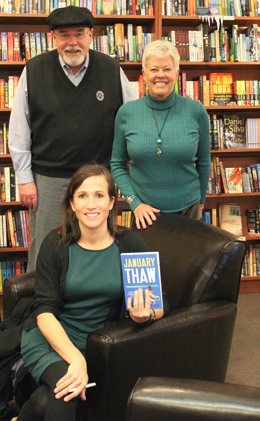 Regarding reading material, we had the good fortune to have a doubleheader on Friday. Two of our favorite writers were in town, returning to the place where they once each lived. On Friday, Jess Lourey was at Cherry Street Books debuting the most recent of her murder-by-month mysteries, January Thaw:
