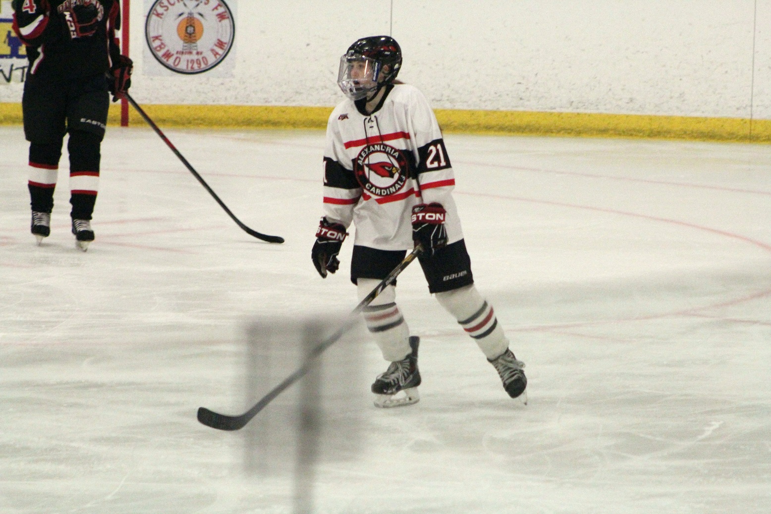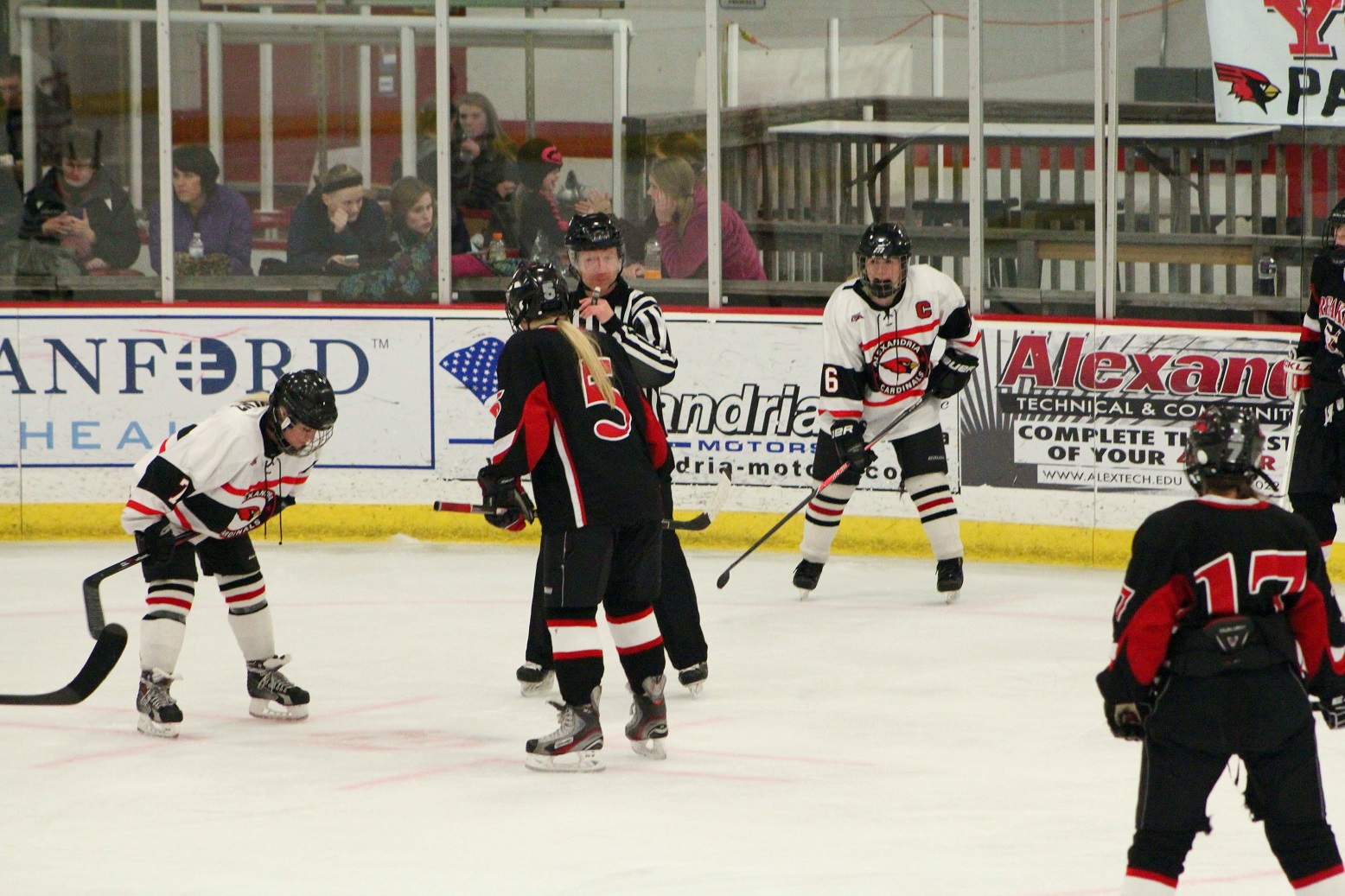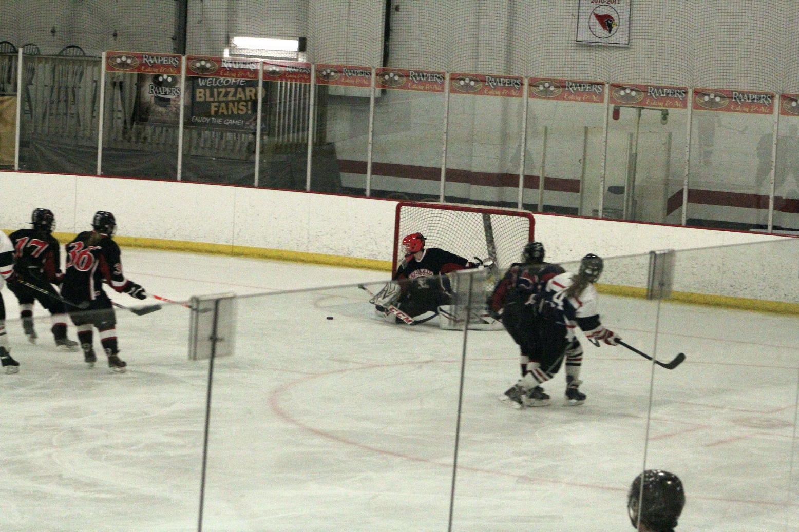 Until this year, the Cardinals had always held their own against the bigger schools and the combined schools. However, it has got to be really hard to fight that numbers game every year. This is the first year we’ve really noticed that when we play these class AA schools, we haven’t been competitive. We lost all 6 games (home & home) against the three biggest conference “schools,” including River Lakes, this year, only scoring a total of 5 goals in those 6 games. And this game really defined the difference. The Icebreakers were like watching a college team (at least on this night). And they displayed the talents that really good hockey teams have: 1) they can pass, and 2) they can forecheck. As a result of both, they outshot the Cards by two-to-one. Sometimes that stat isn’t reflective of anything, but in this case it was. Forechecking is like the full court press in basketball – it will wear you down and causes turnovers. The Cards had trouble getting out of our end all night. The Icebreakers just did a great job of always having somebody in the passing lanes. To maintain puck control, we often had to circle back behind our own goal to try to start over. And the Icebreakers absolutely dominated the face-off circle – the Cards finally had to move Taylor back up from defense in the 3rd period to see if we could win a draw. She held her own.