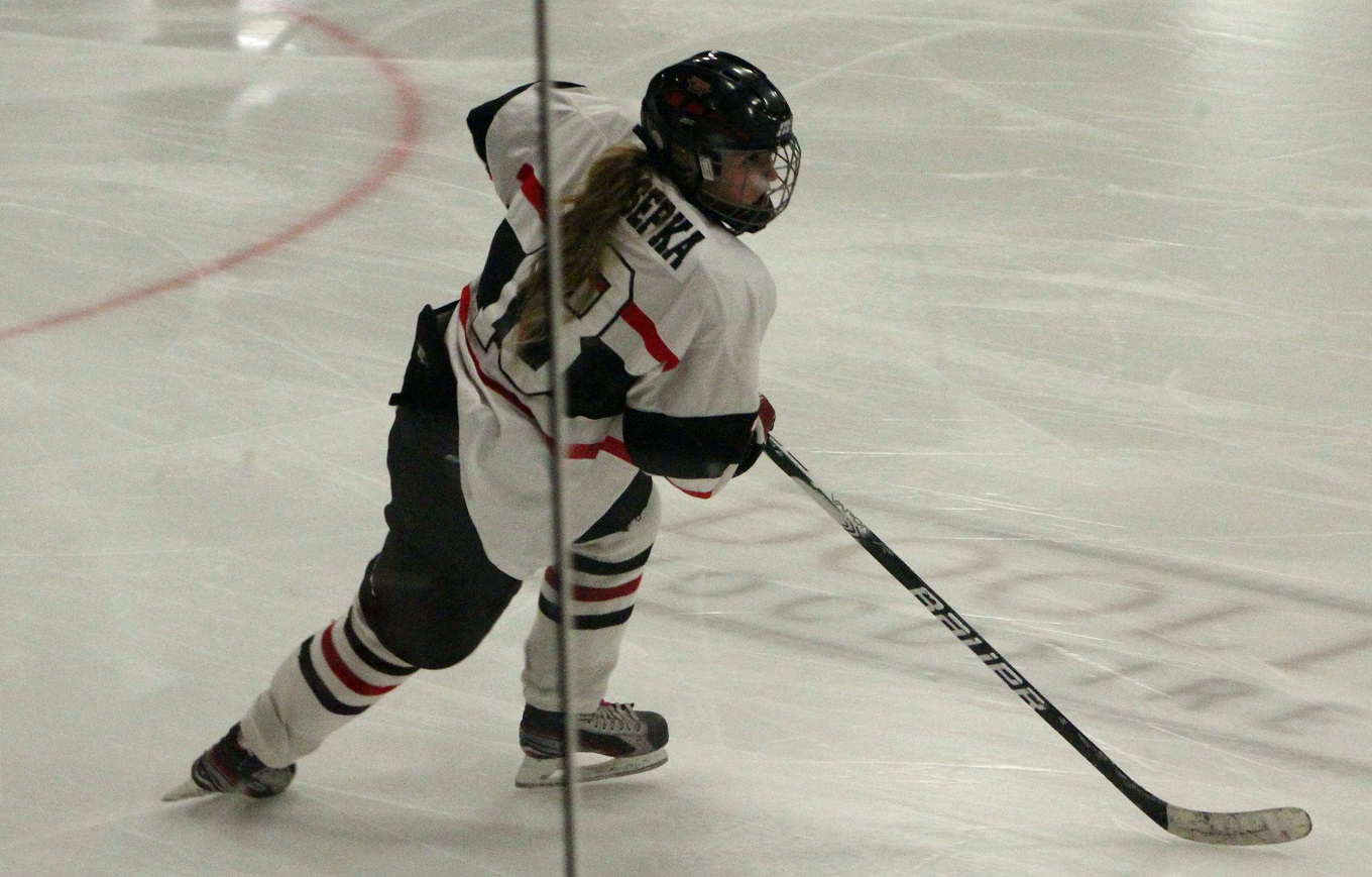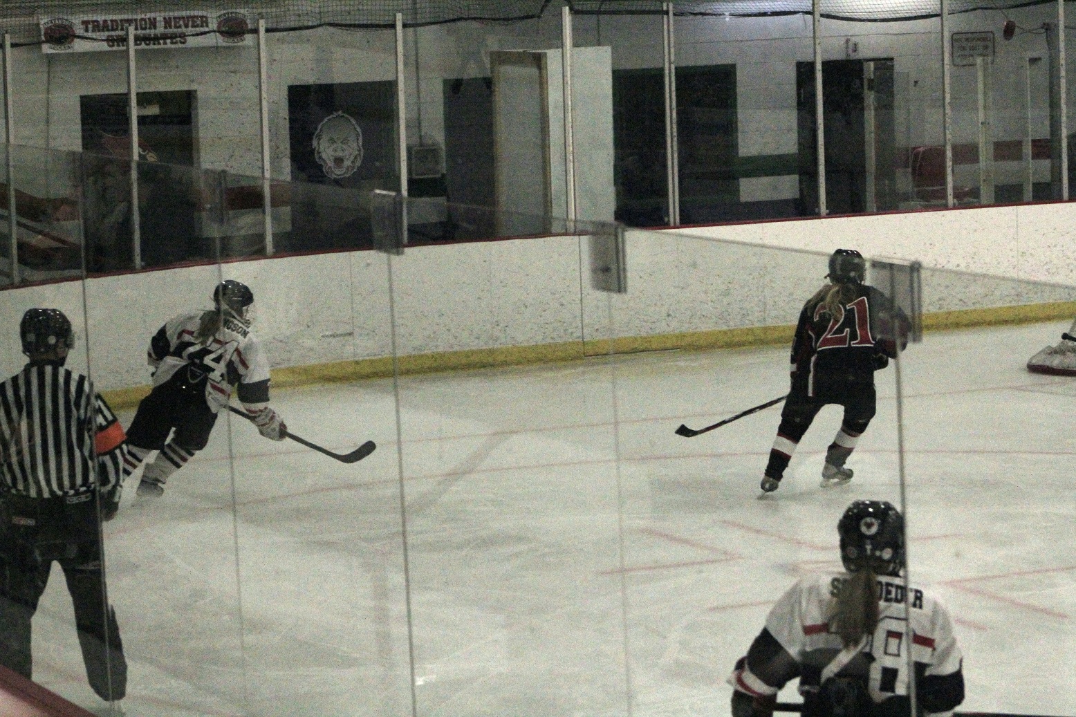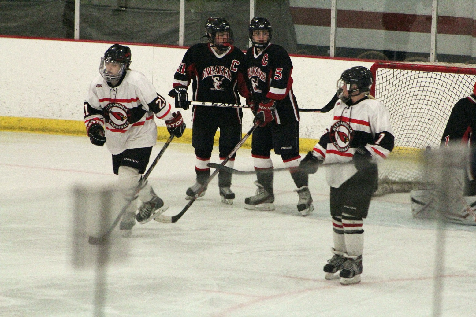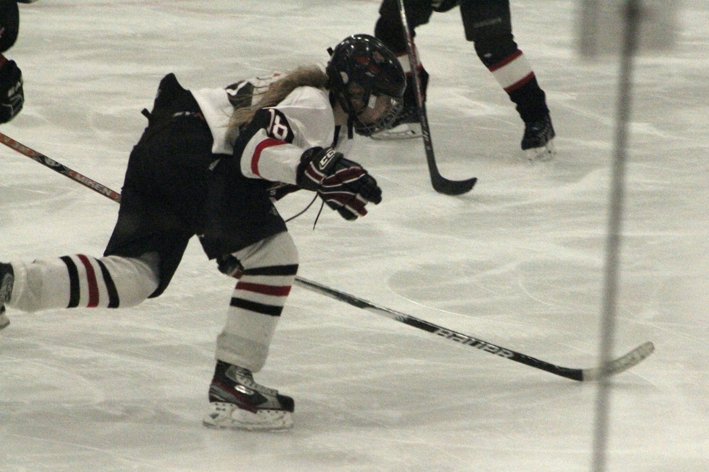 Until this year, the Cardinals had always held their own against the bigger schools and the combined schools. However, it has got to be really hard to fight that numbers game every year. This is the first year we’ve really noticed that when we play these class AA schools, we haven’t been competitive. We lost all 6 games (home & home) against the three biggest conference “schools,” including River Lakes, this year, only scoring a total of 5 goals in those 6 games. And this game really defined the difference. The Icebreakers were like watching a college team (at least on this night). And they displayed the talents that really good hockey teams have: 1) they can pass, and 2) they can forecheck. As a result of both, they outshot the Cards by two-to-one. Sometimes that stat isn’t reflective of anything, but in this case it was. Forechecking is like the full court press in basketball – it will wear you down and causes turnovers. The Cards had trouble getting out of our end all night. The Icebreakers just did a great job of always having somebody in the passing lanes. To maintain puck control, we often had to circle back behind our own goal to try to start over. And the Icebreakers absolutely dominated the face-off circle – the Cards finally had to move Taylor back up from defense in the 3rd period to see if we could win a draw. She held her own.