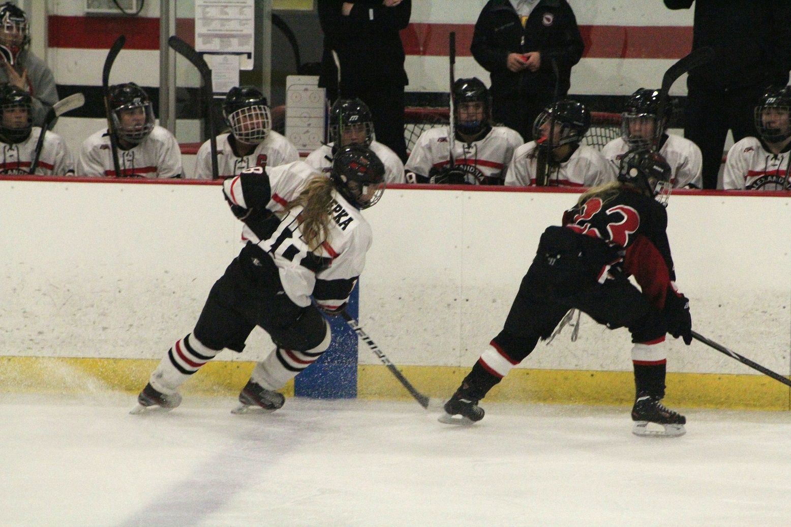 [Bailey started in goal and played the first period and a half. Amy played the rest of the game. This was just to keep them both sharp for the upcoming sections. This was the last regular season game, and likely had no impact on the conference standings or the section seedings.]