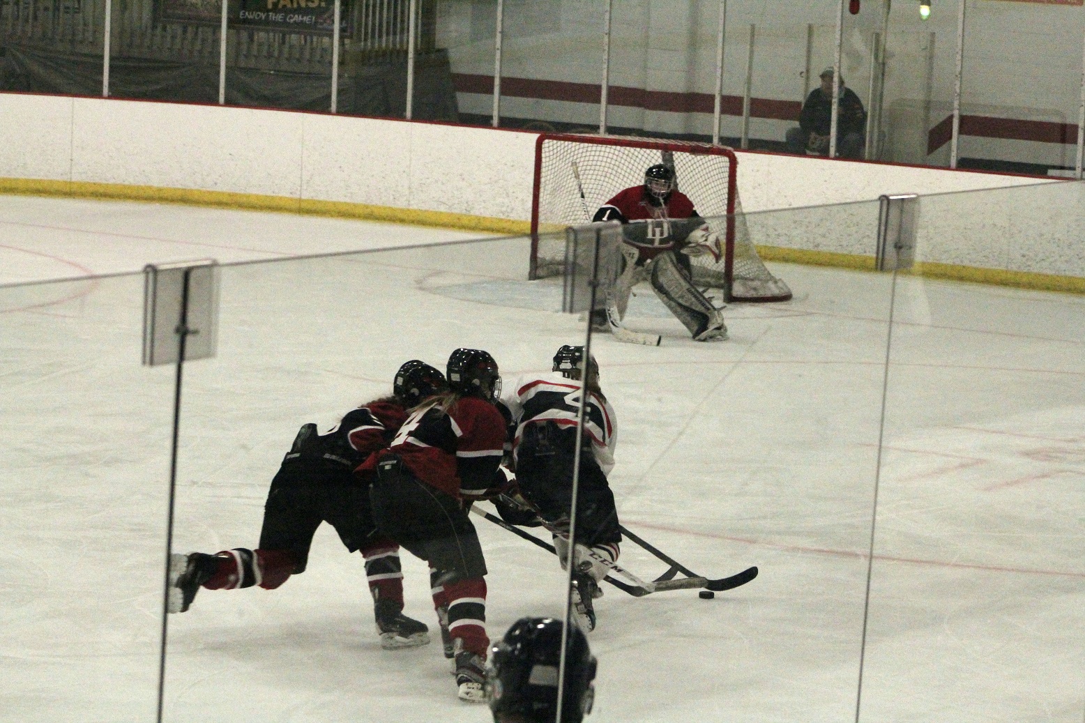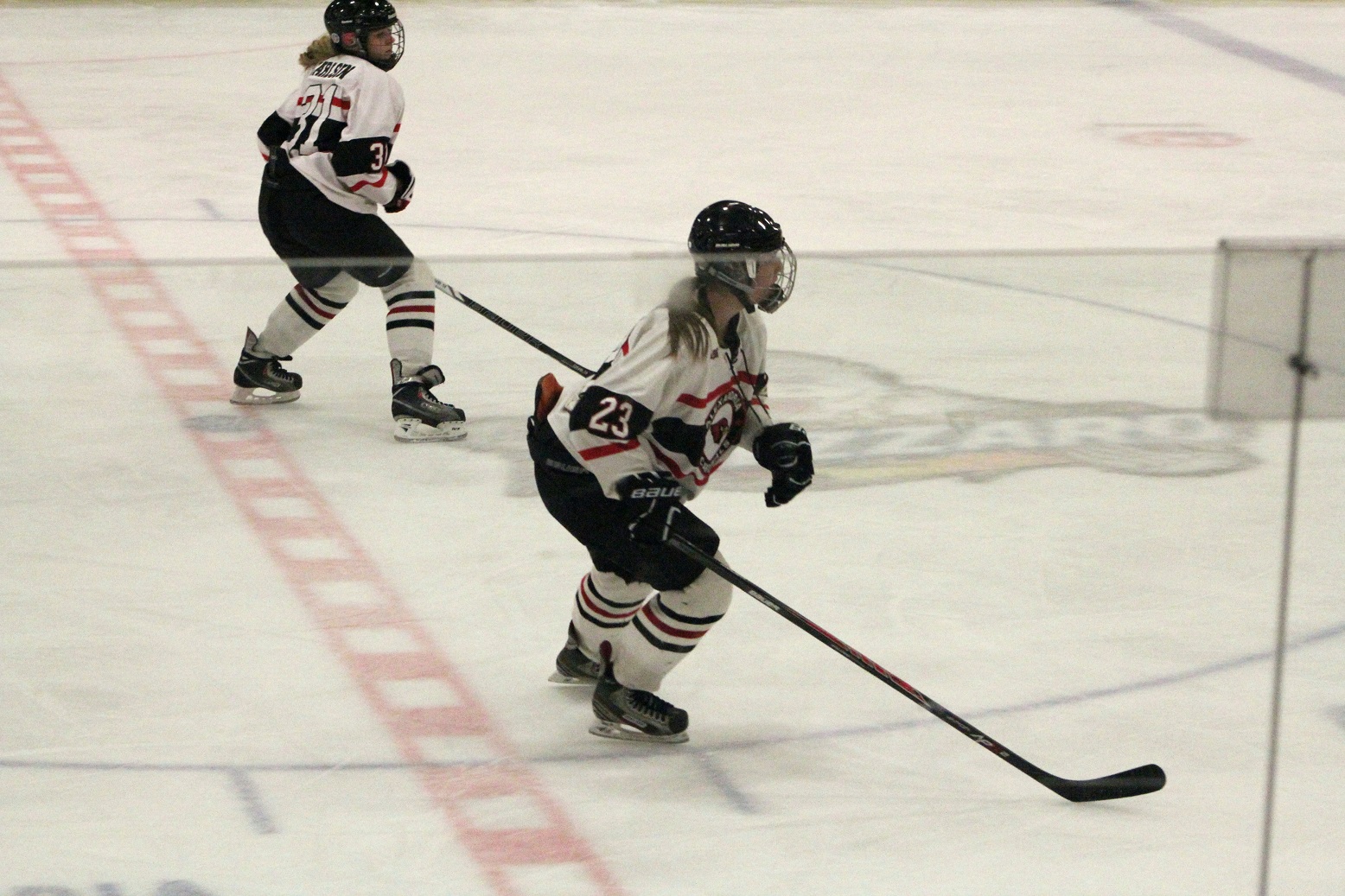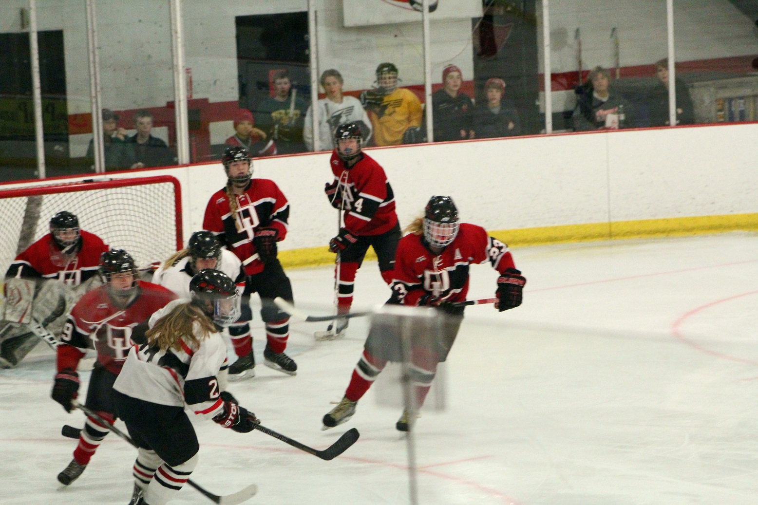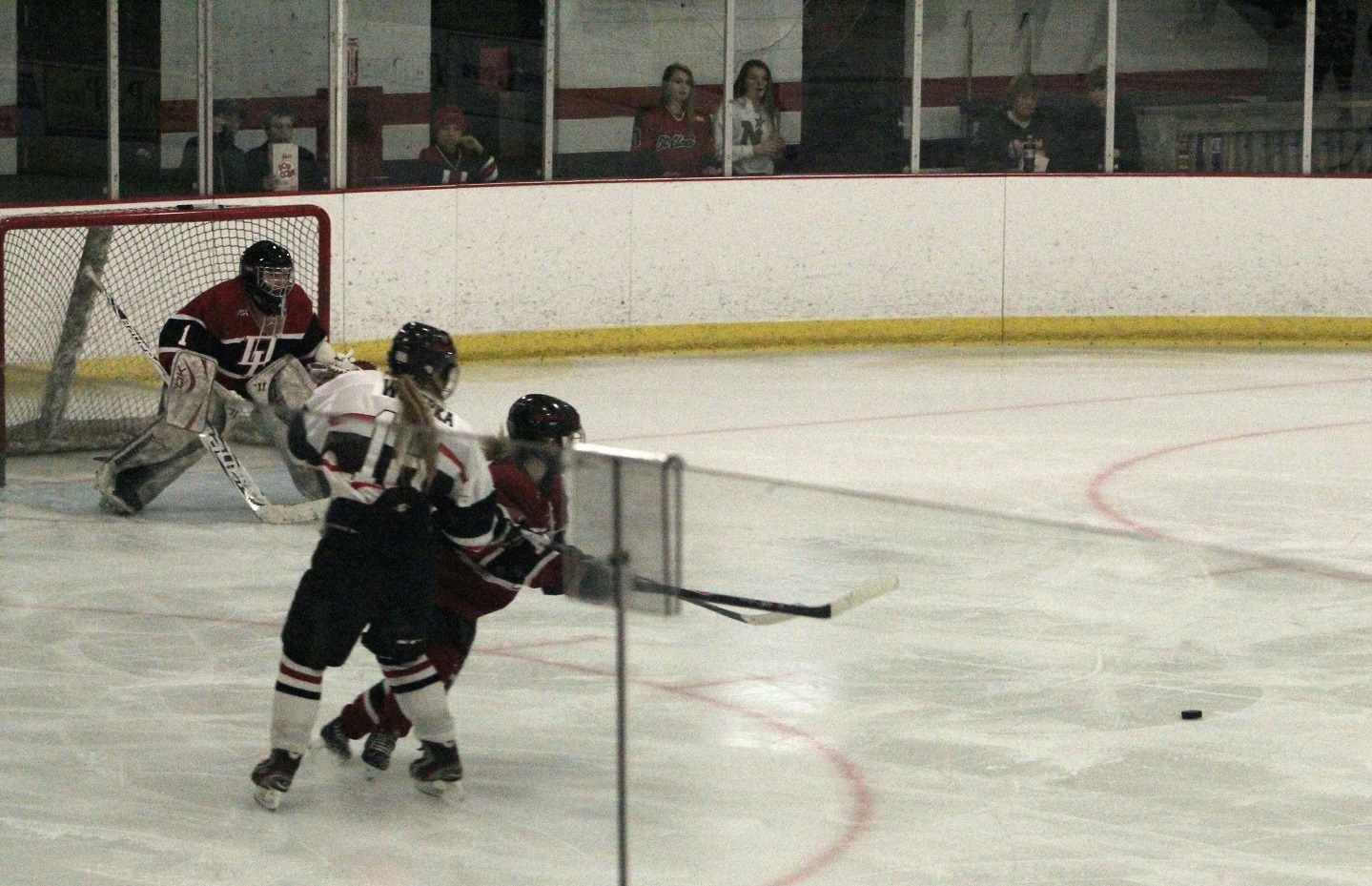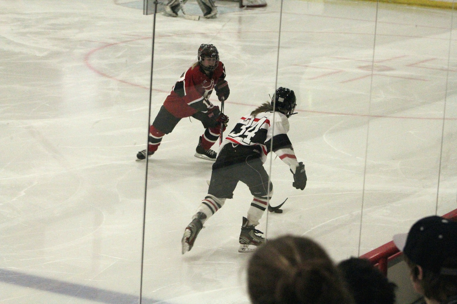[Looks like Hanah’s in front, can’t tell who has the puck?]