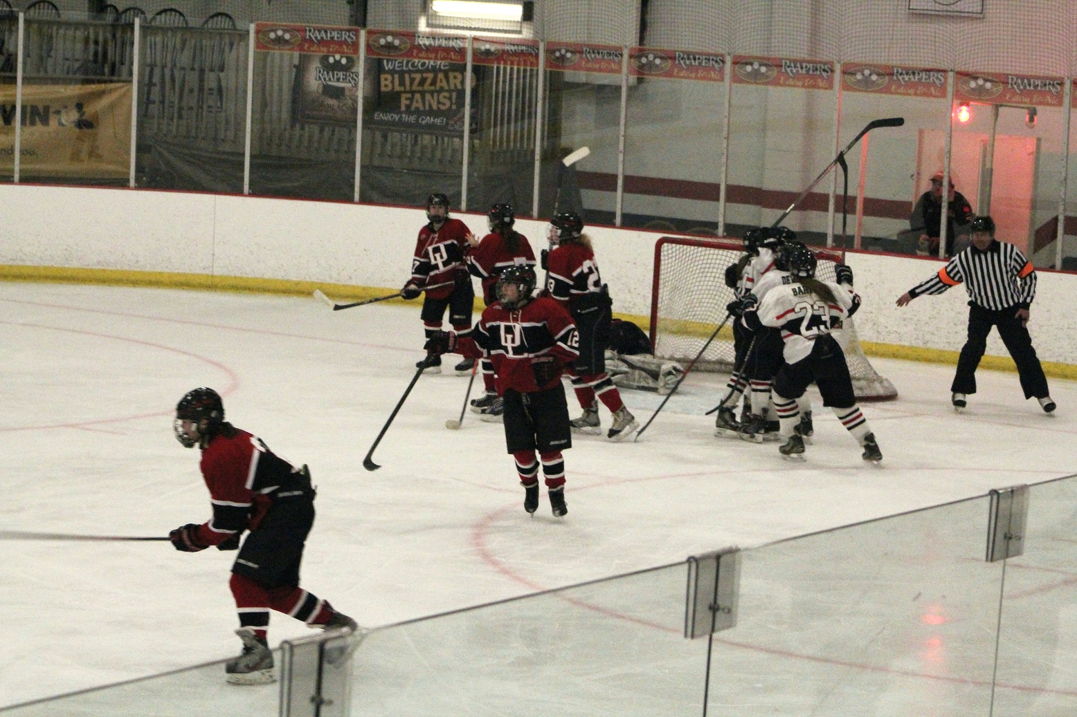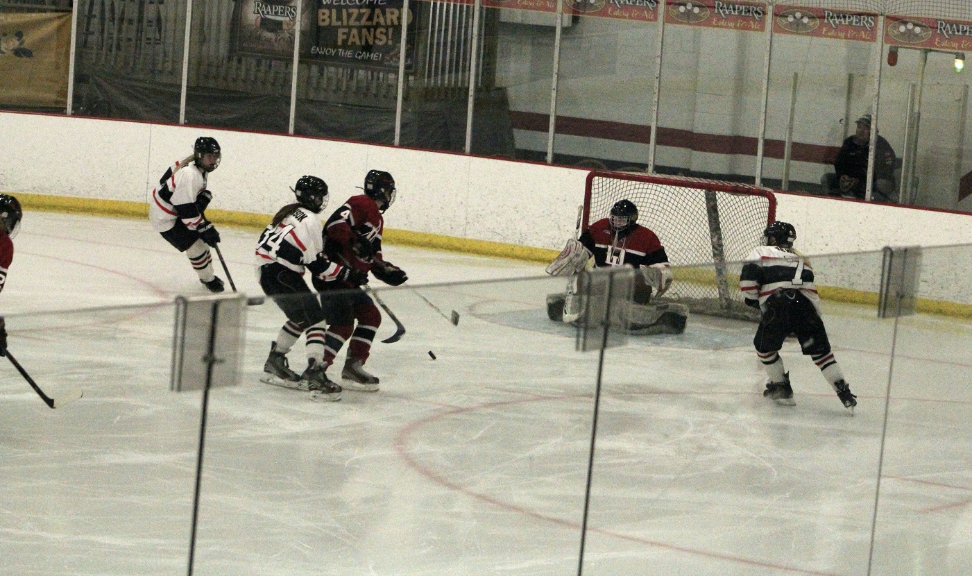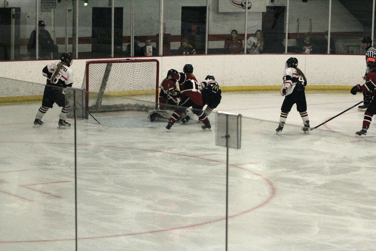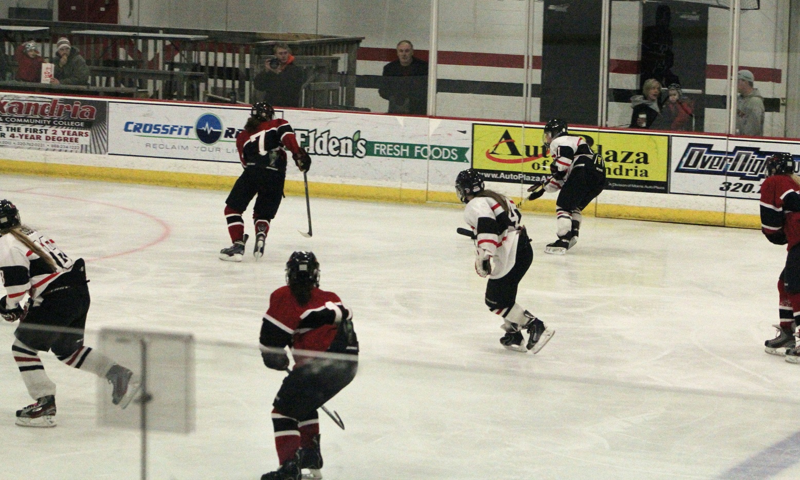 [Looks like Hanah’s in front, can’t tell who has the puck?]