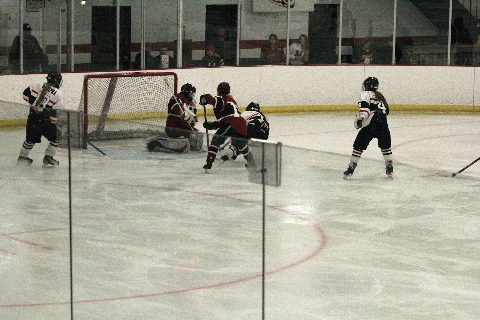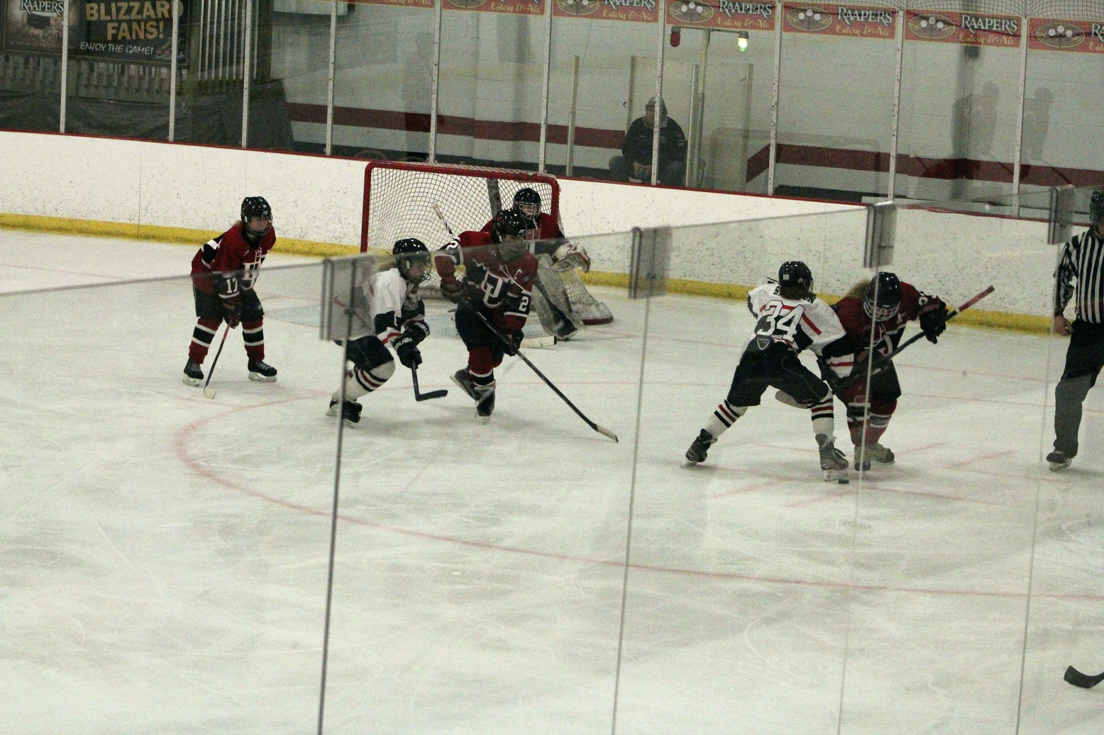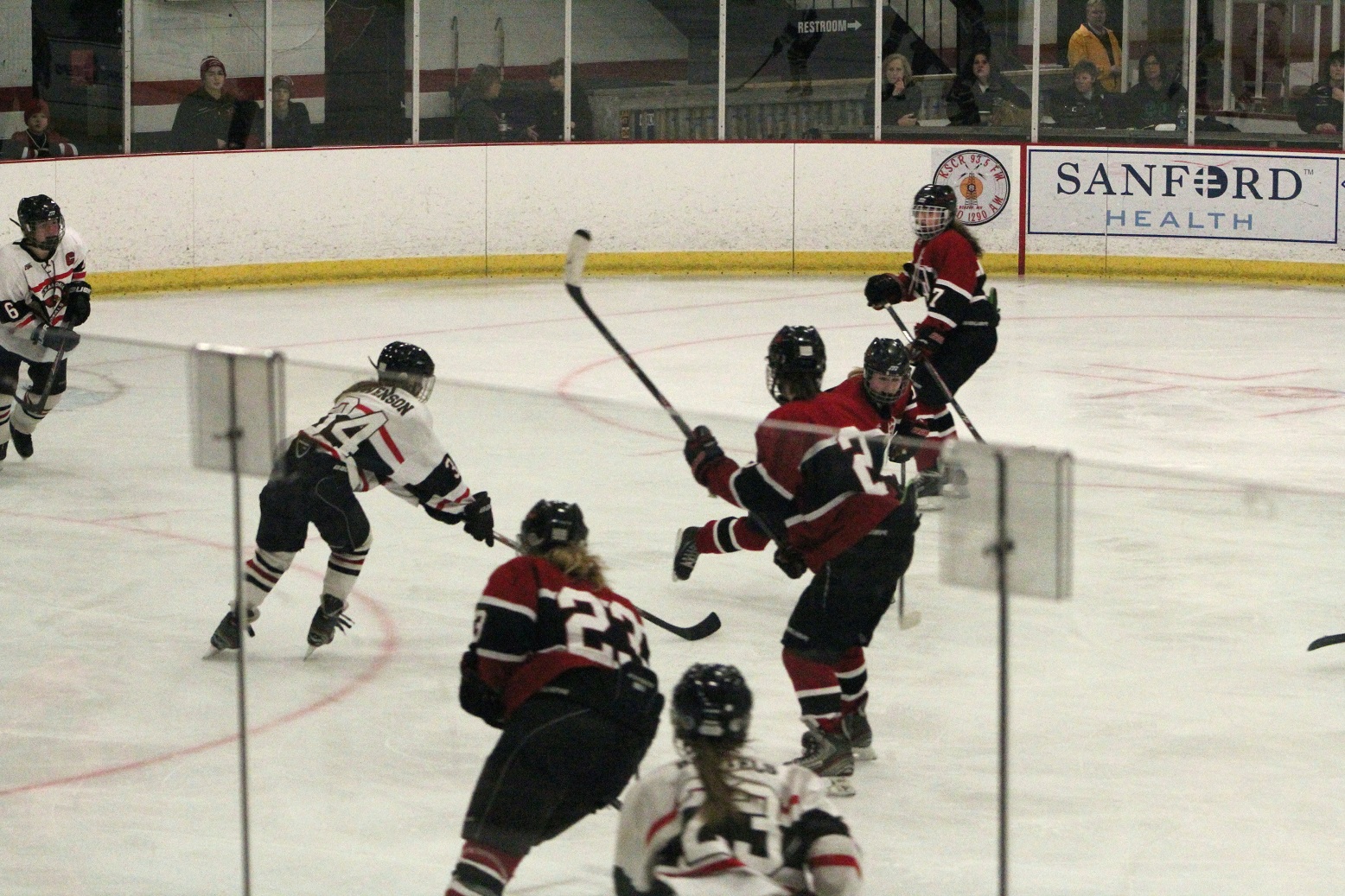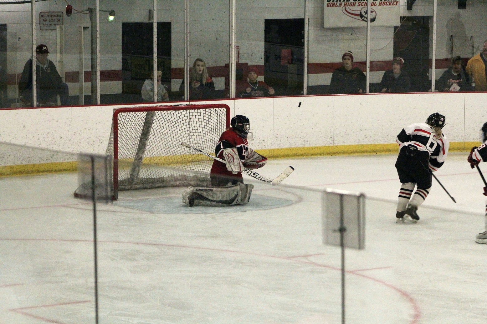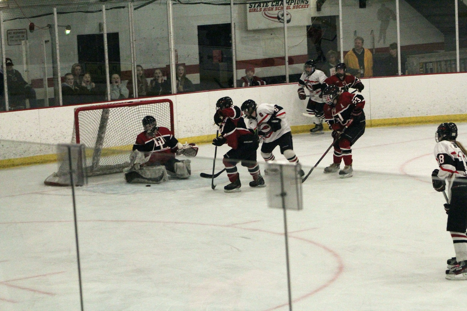 [Looks like Hanah’s in front, can’t tell who has the puck?]