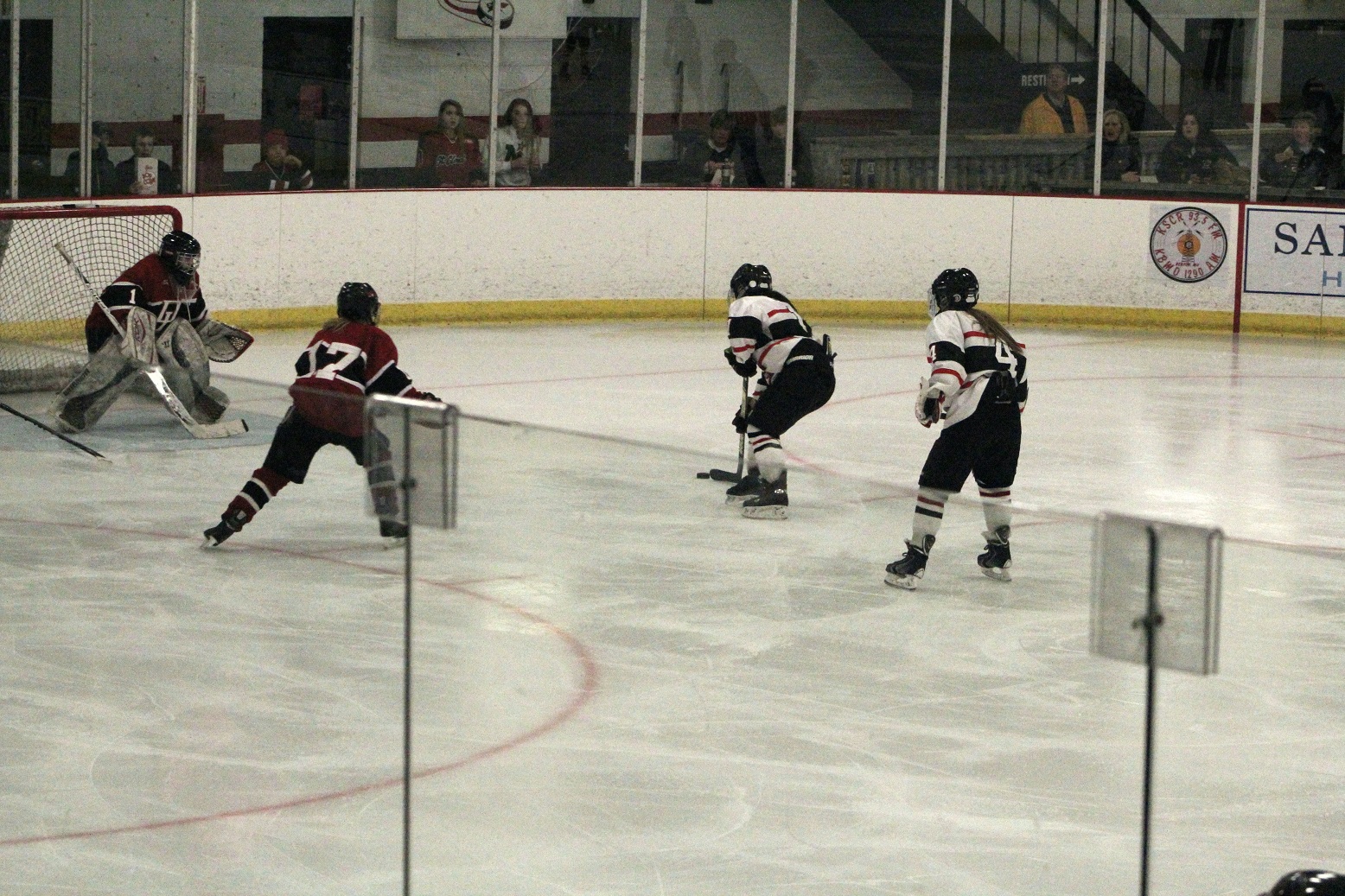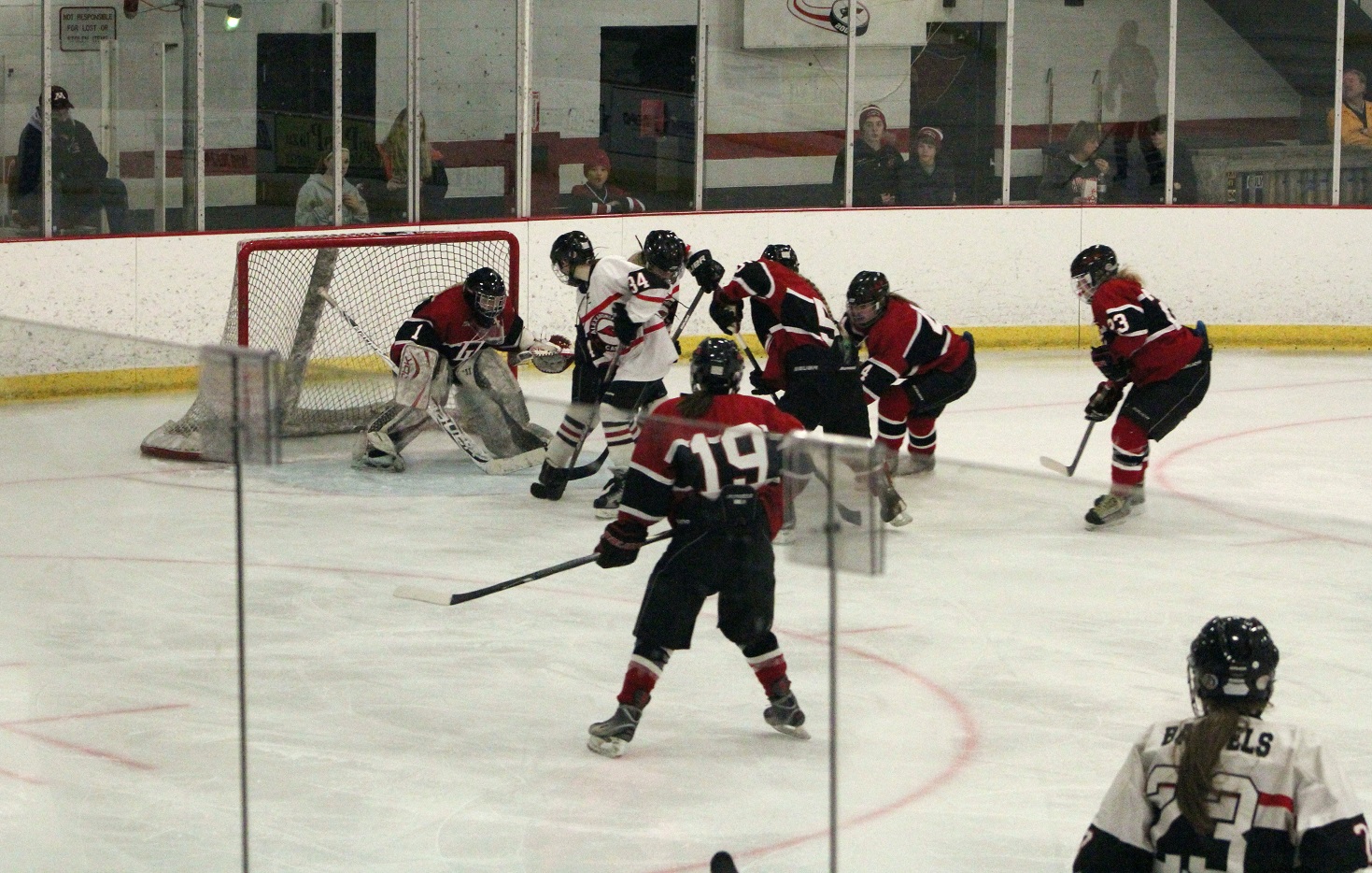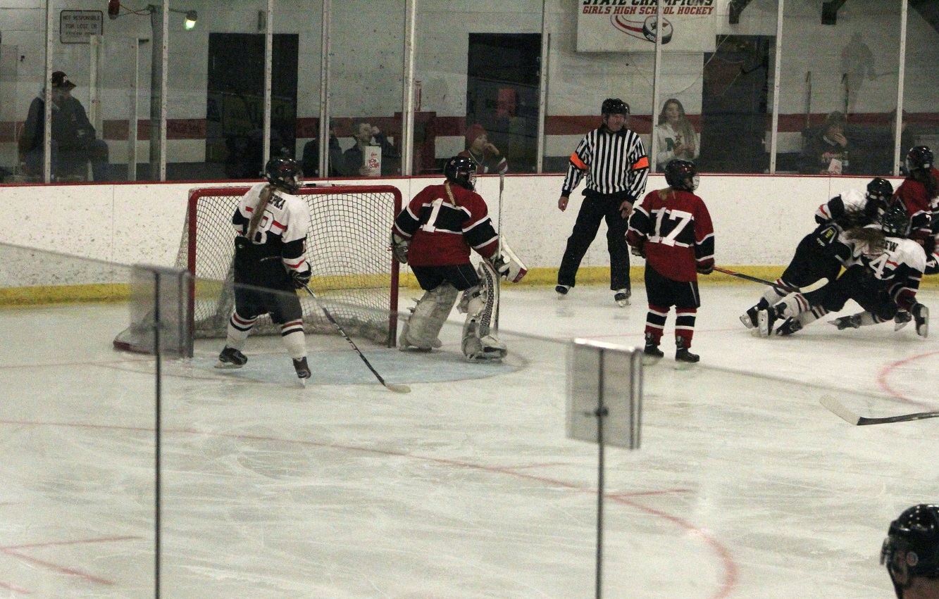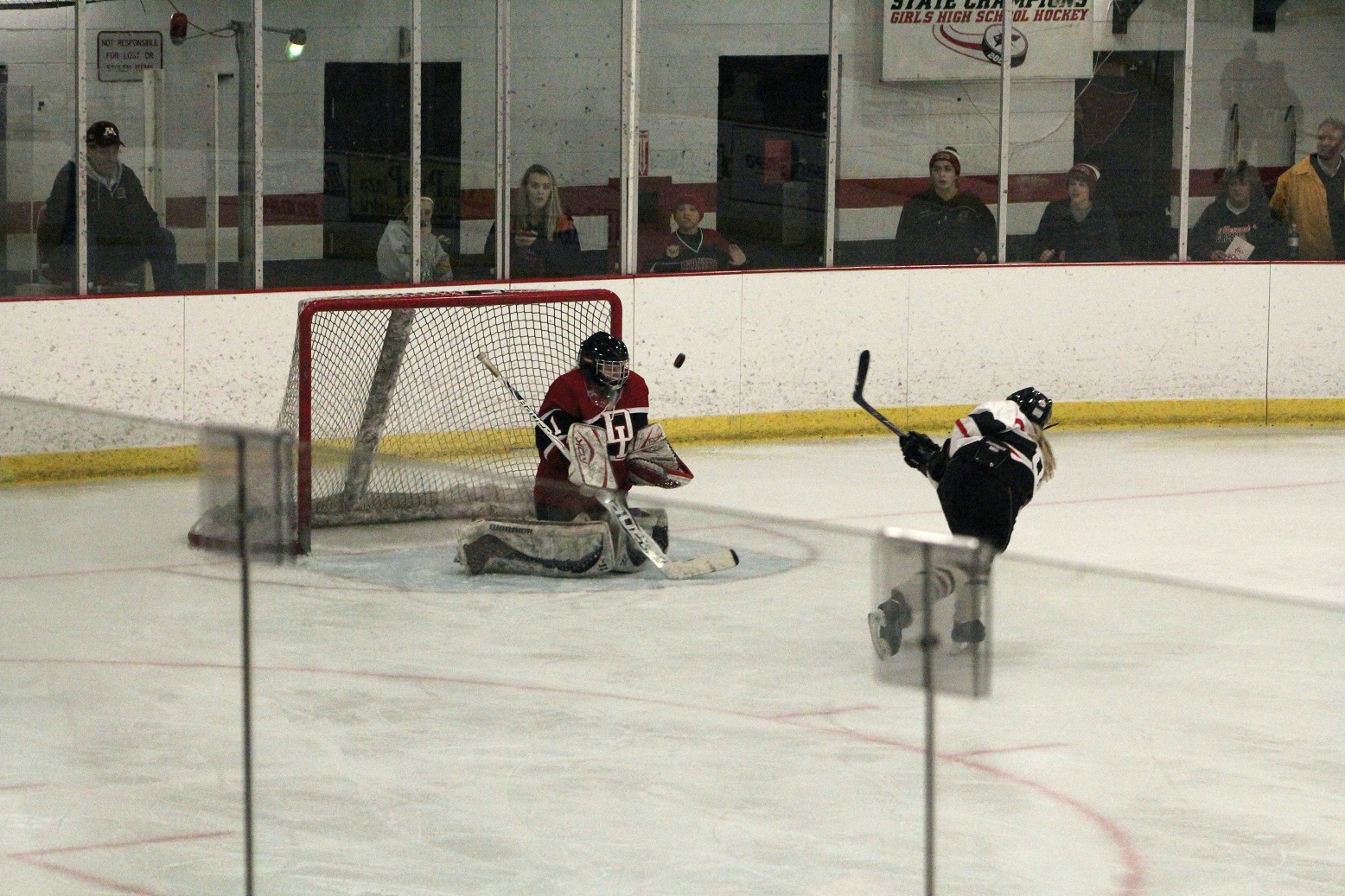 [Looks like Hanah’s in front, can’t tell who has the puck?]