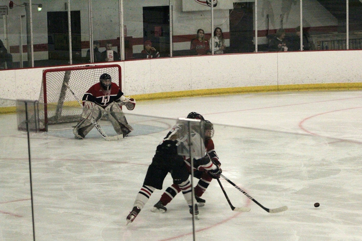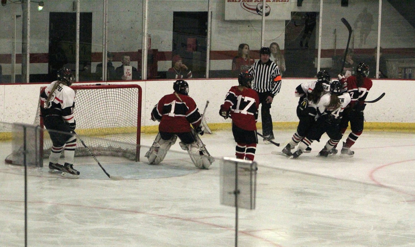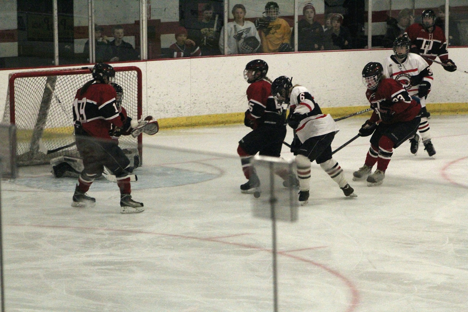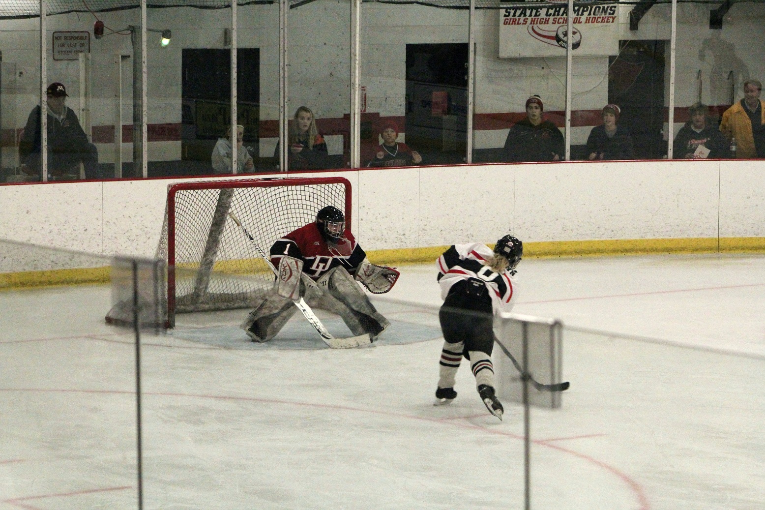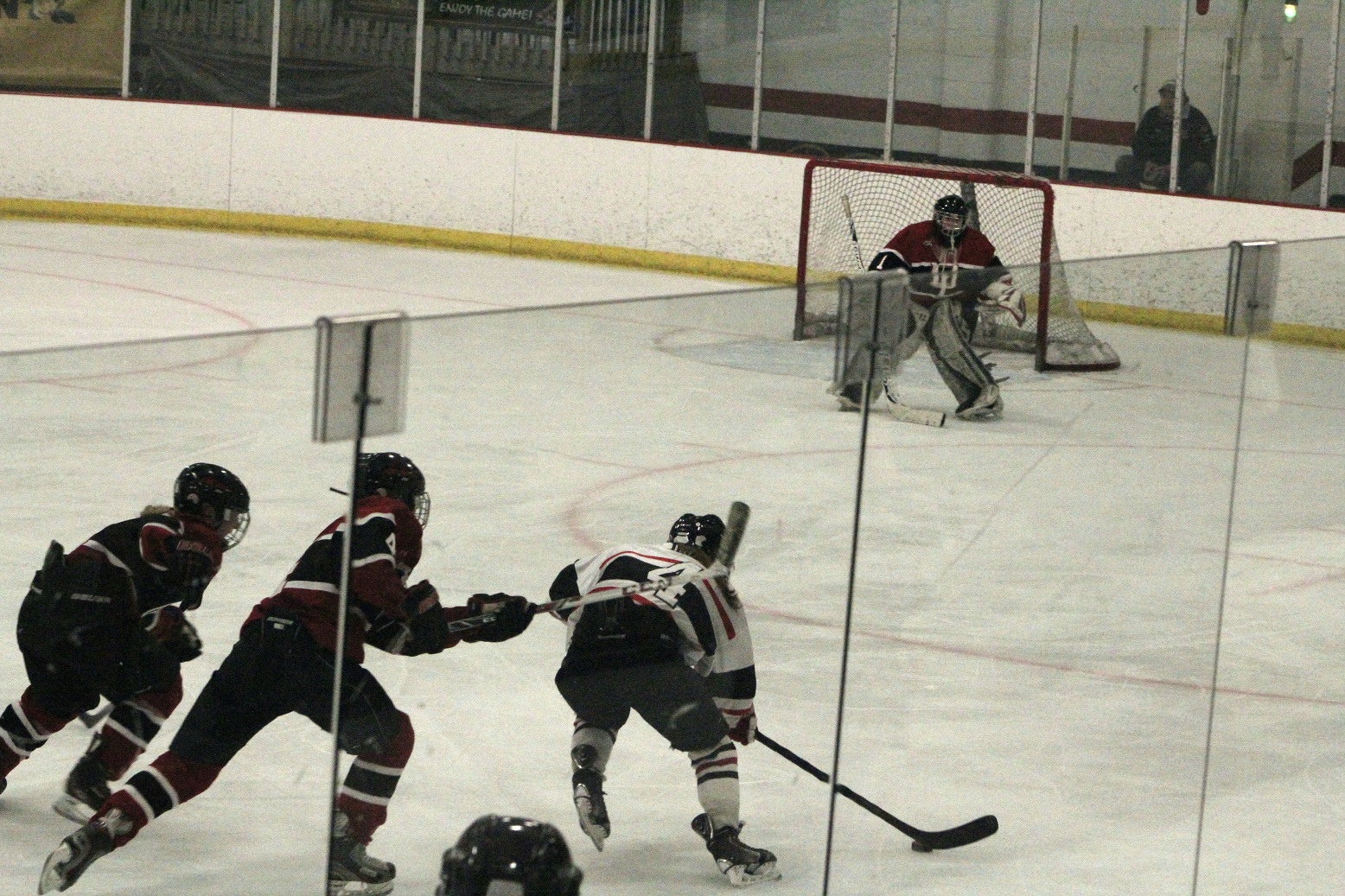 [Looks like Hanah’s in front, can’t tell who has the puck?]