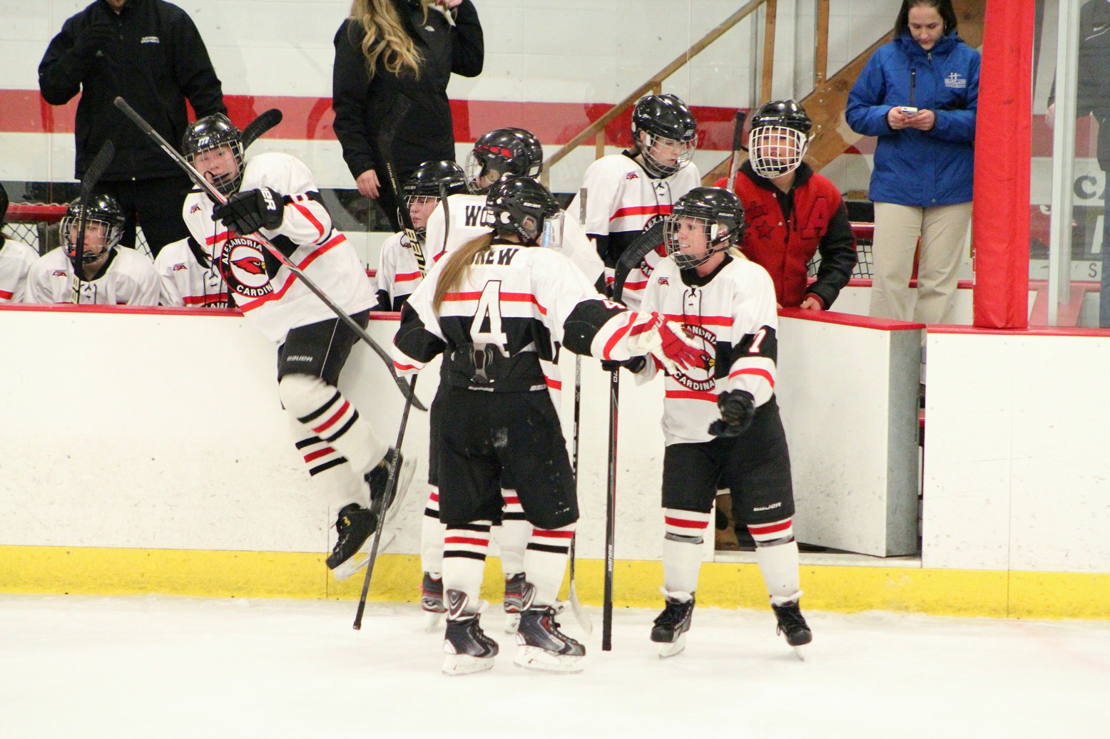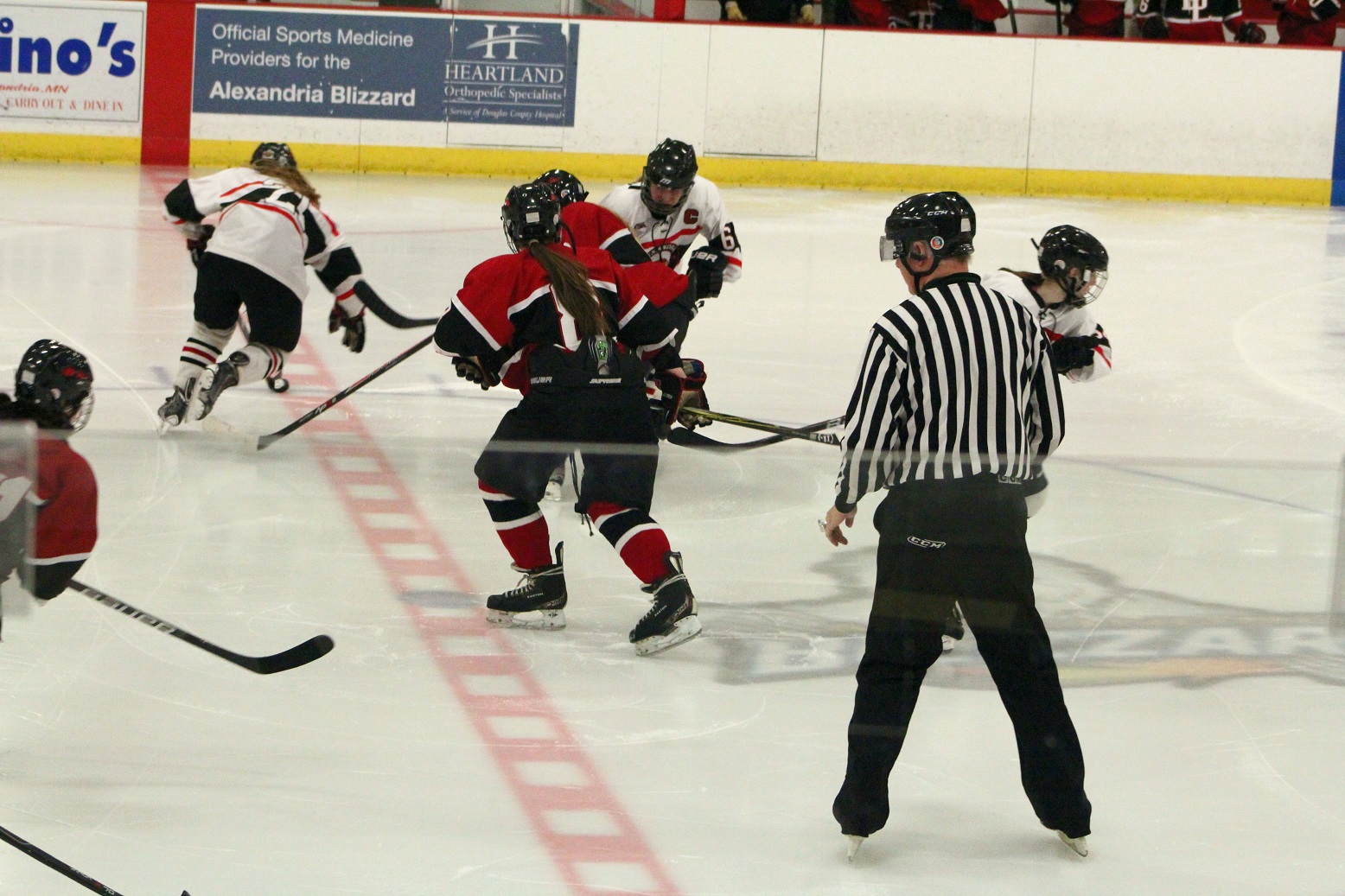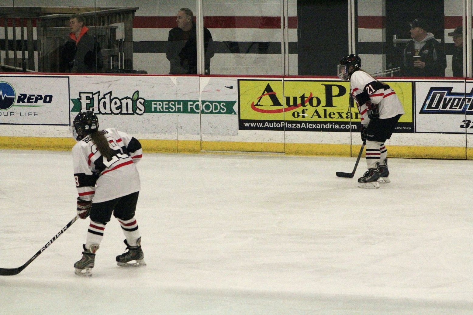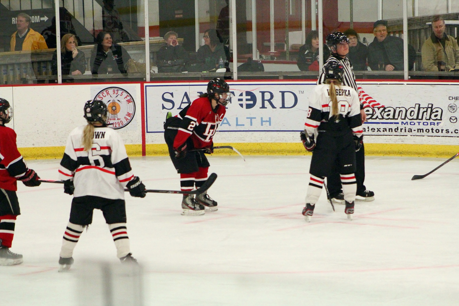 When we walked into the RCC on Tuesday night, the first person we saw was Assistant Coach Ashley Holmes. We asked how everyone was feeling about this section semi-final game against Detroit Lakes. She replied, “A little nervous.” To which I mumbled something to the effect that was good because it’s a tournament game. The Cards were the No. 1 seed, DL was seeded 4th, and we beat them twice during the regular season – all the reasons to be a little nervous. [Your guest columnist photo here are our nieces, Sophie and Jessica, of Stafford, Virginia. They are basketball fans. I have no idea why I put them in a hockey post?]