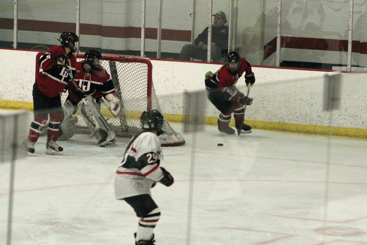 [After scoring no goals for 2 1/2 periods, we now had 3 in a matter of minutes.]