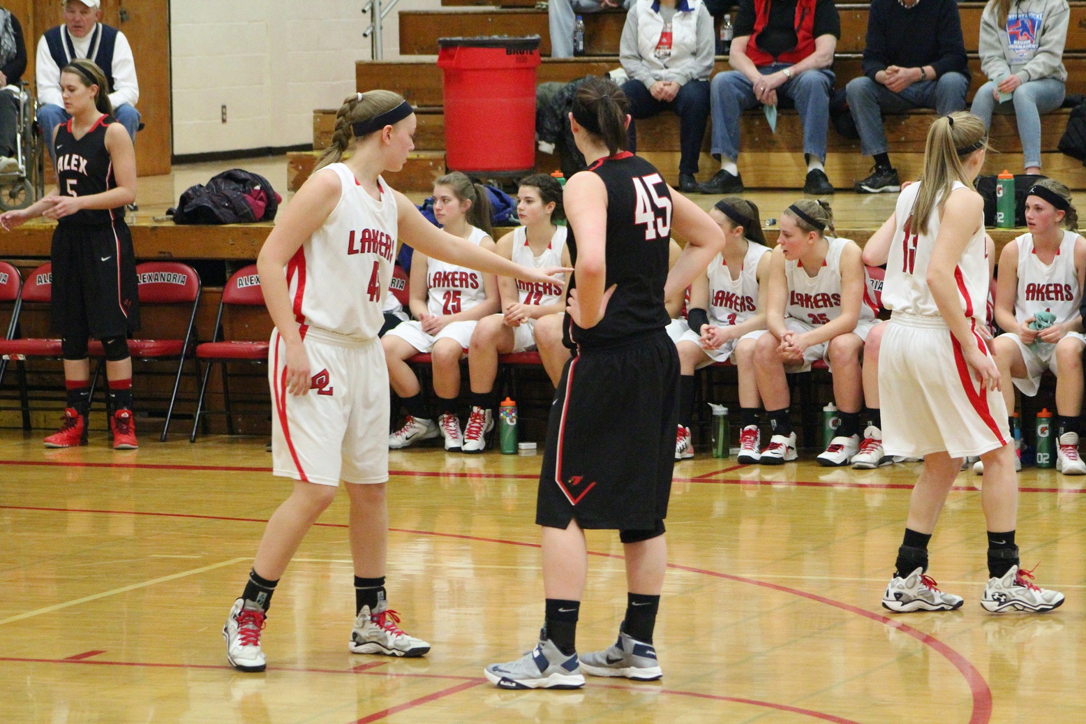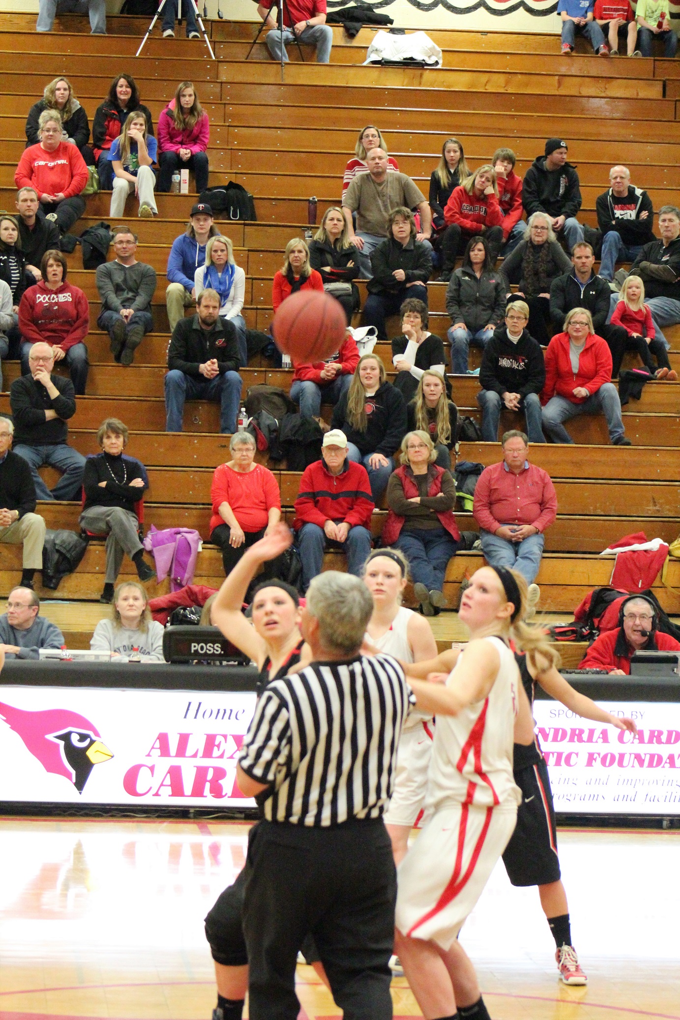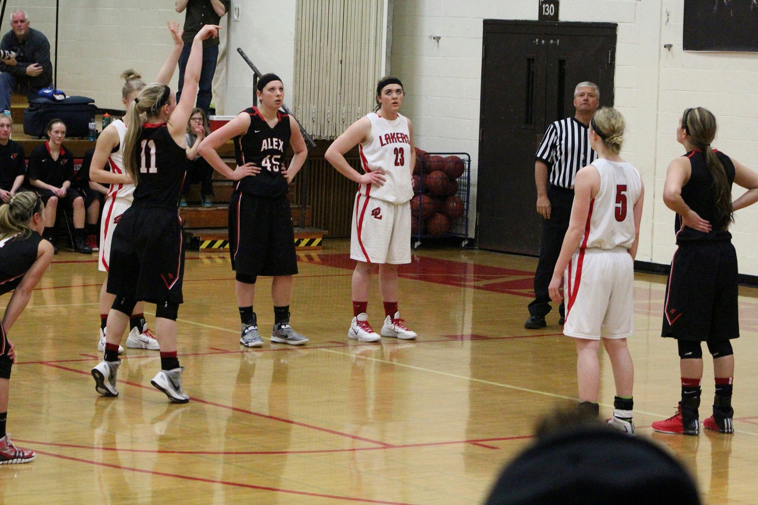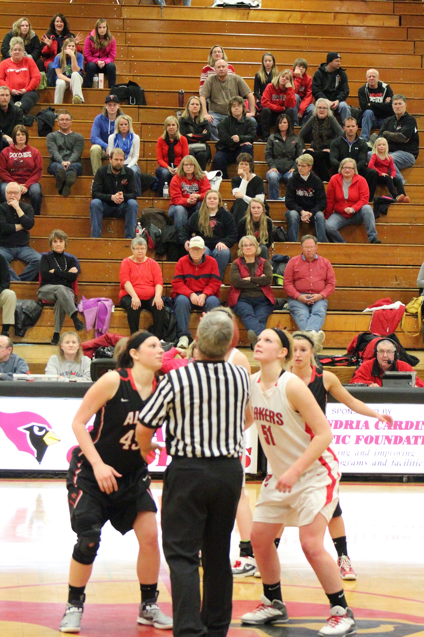 We had what had to be the statistical anomaly of the year with Detroit Lakes this season. We opened our schedule at their place . . . and scored 60 points in the first half, breaking all sorts of records, on our way to a blow out victory. In the remaining 2 1/2 games, plus an overtime, against the Lakers we only scored 89 points, total? After DL returned the blow out at our place, we battled through the 3rd game to move on in the sections. Oh, did I mention this was the opening game of the sections? Speaking of statistical anomalies, the Lakers made 28 of 35 free throws in this game (13 more than we did), that’s 80 per cent shooting, good at any level; they had more rebounds; they had fewer turnovers; they had more size; Karly sat out most of the 1st half with foul trouble, Sarah sat out the end for the same reason; Amanda C is playing on a broken foot and sat out for extended periods. So, how’d we win? I dunno? Guts, I guess. [Our guest column photo is on lease with option to buy from Kohler’s Facebook posting. I should amend the title but I won’t. There will be some games from other sections played in our gym to come.]