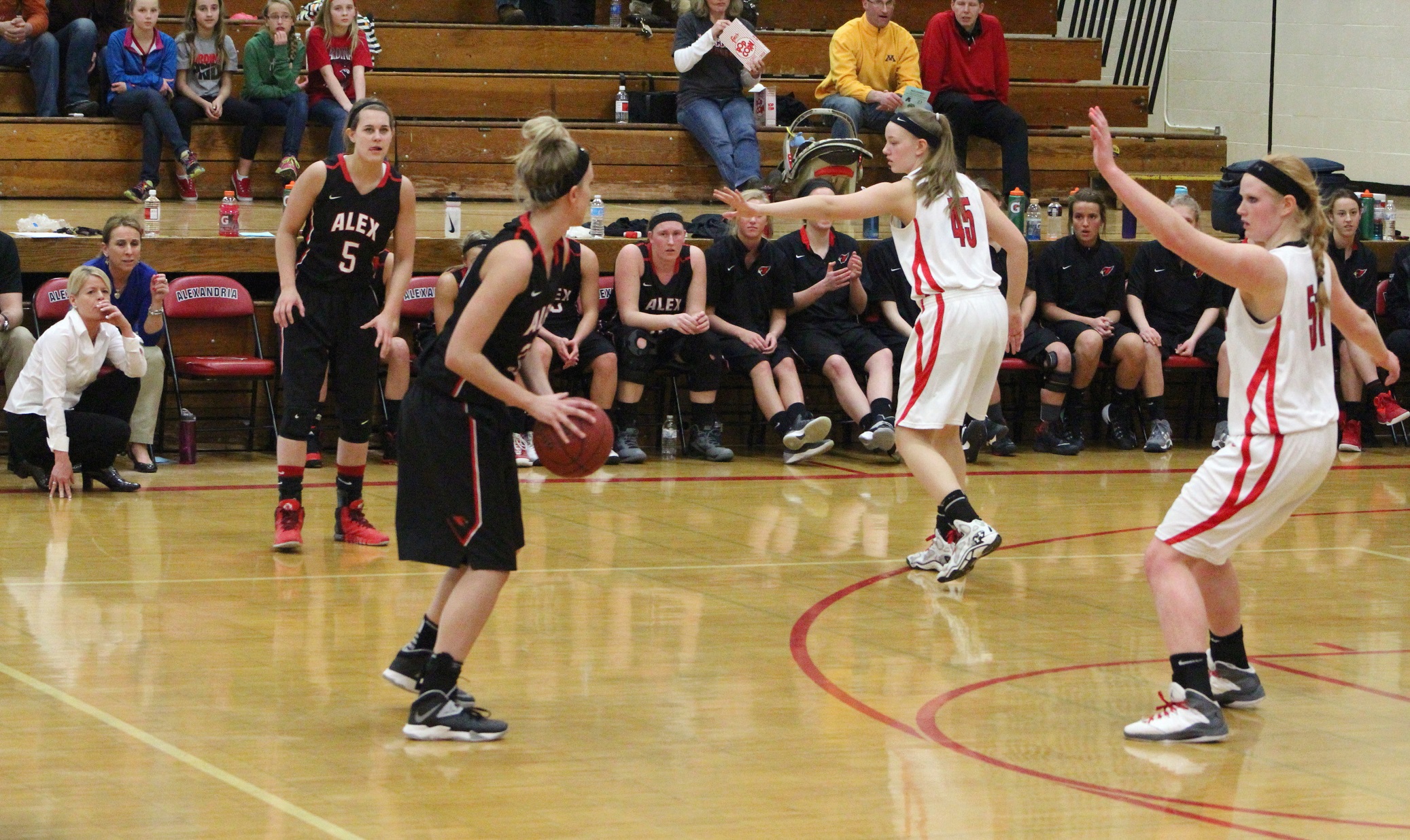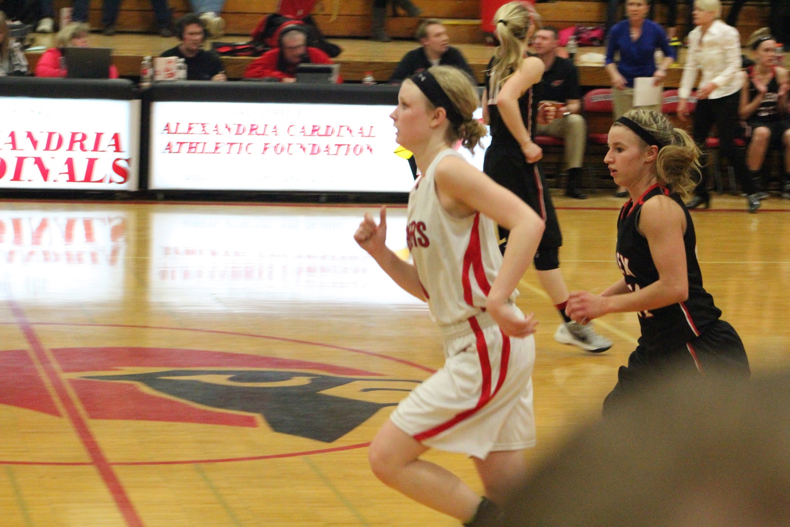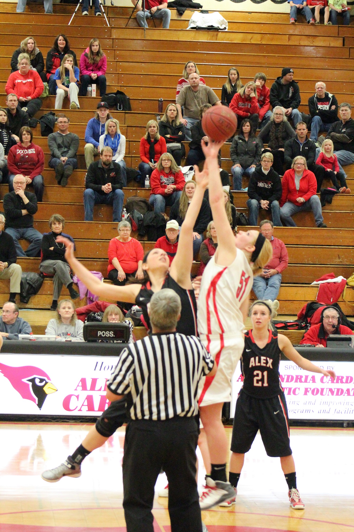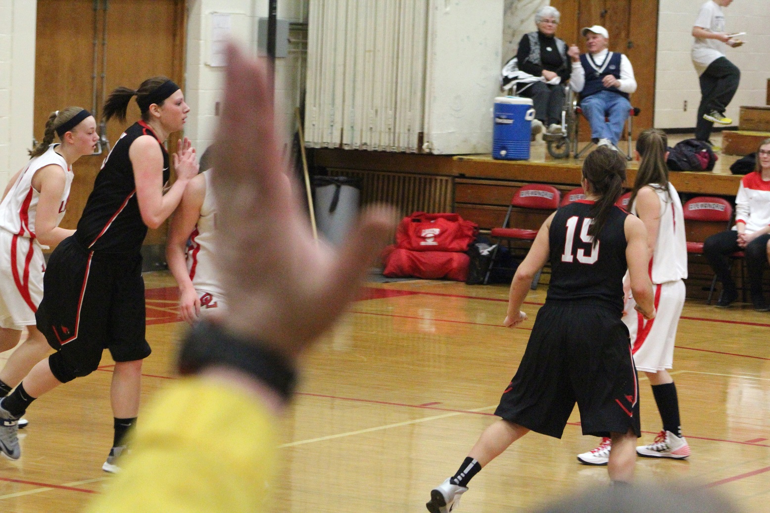 We had what had to be the statistical anomaly of the year with Detroit Lakes this season. We opened our schedule at their place . . . and scored 60 points in the first half, breaking all sorts of records, on our way to a blow out victory. In the remaining 2 1/2 games, plus an overtime, against the Lakers we only scored 89 points, total? After DL returned the blow out at our place, we battled through the 3rd game to move on in the sections. Oh, did I mention this was the opening game of the sections? Speaking of statistical anomalies, the Lakers made 28 of 35 free throws in this game (13 more than we did), that’s 80 per cent shooting, good at any level; they had more rebounds; they had fewer turnovers; they had more size; Karly sat out most of the 1st half with foul trouble, Sarah sat out the end for the same reason; Amanda C is playing on a broken foot and sat out for extended periods. So, how’d we win? I dunno? Guts, I guess. [Our guest column photo is on lease with option to buy from Kohler’s Facebook posting. I should amend the title but I won’t. There will be some games from other sections played in our gym to come.]