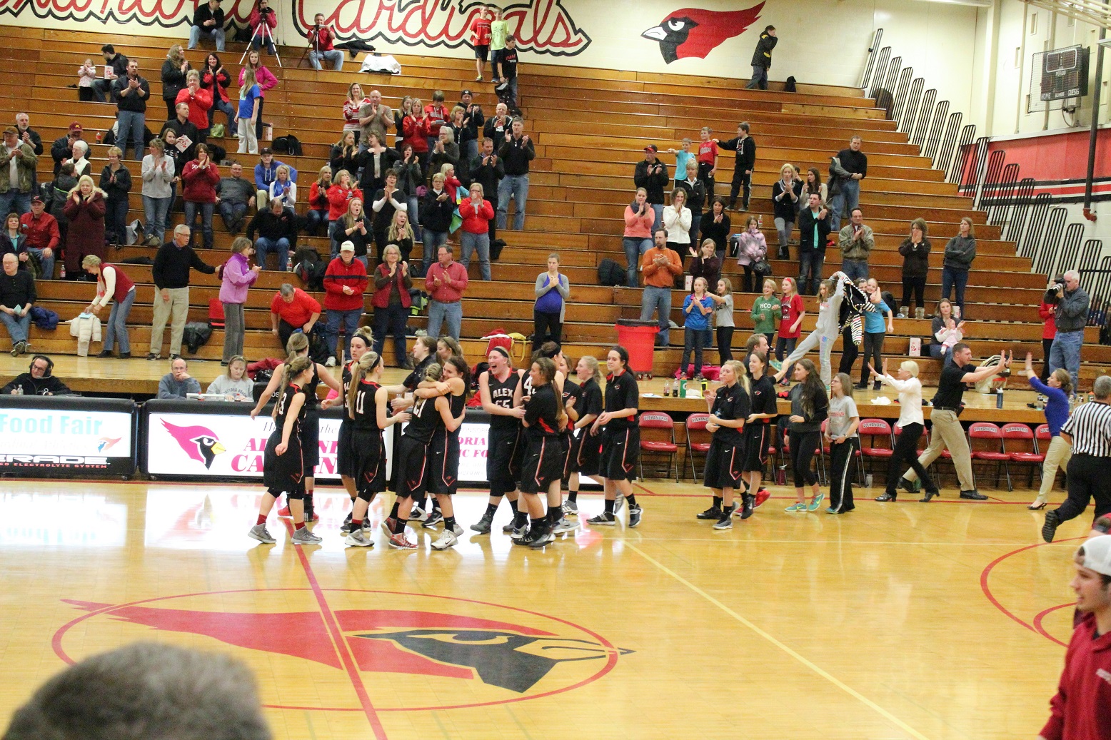 [Everybody stood to see what happened. The shot was a tad short, but Karly, of all people, got the offensive rebound, and immediately, with one second left, put it back up and in . . .]